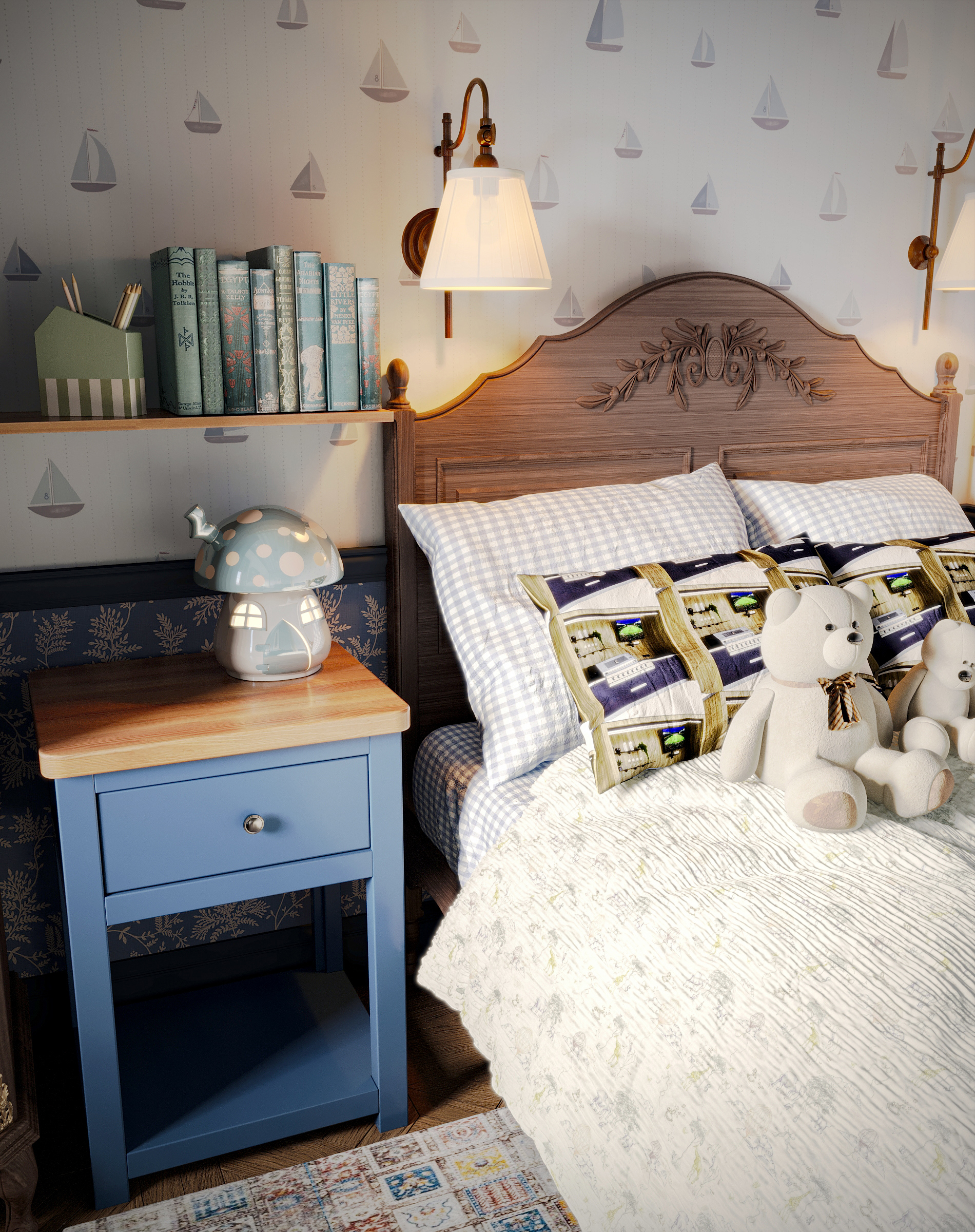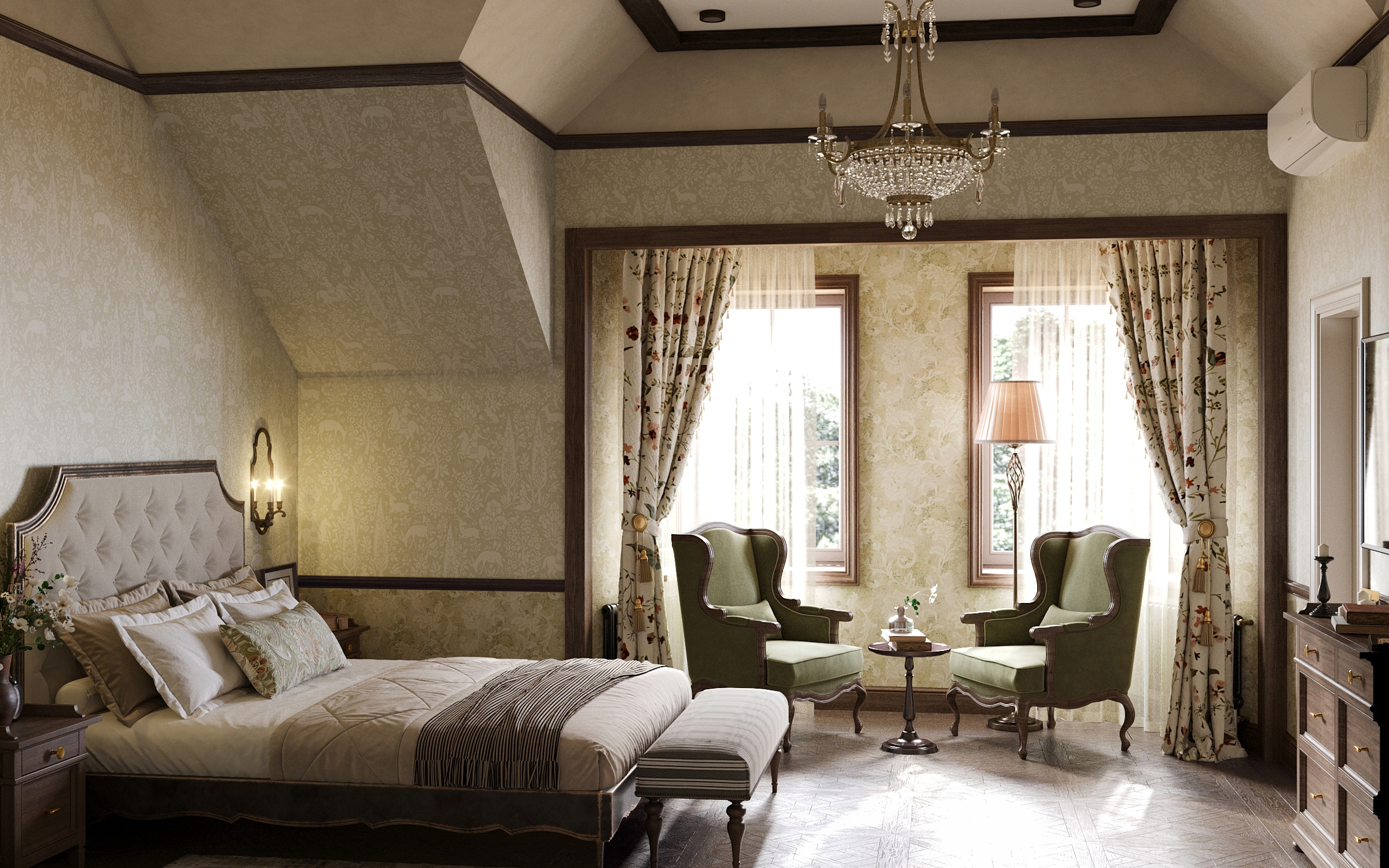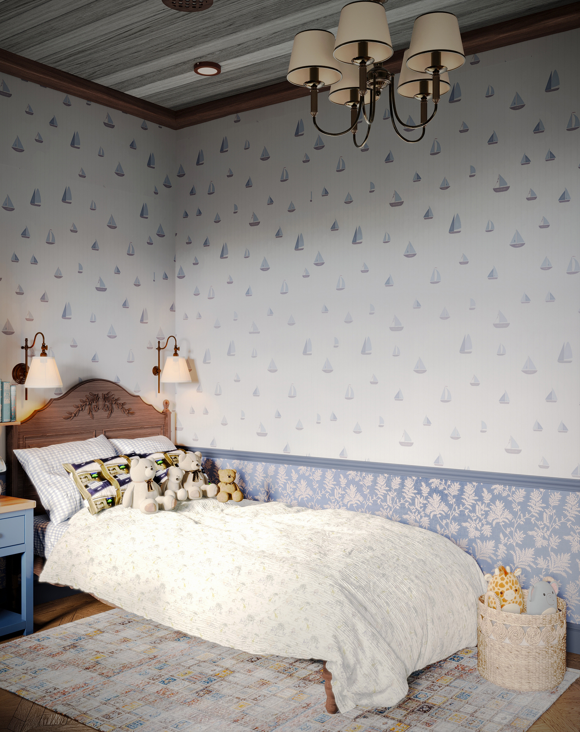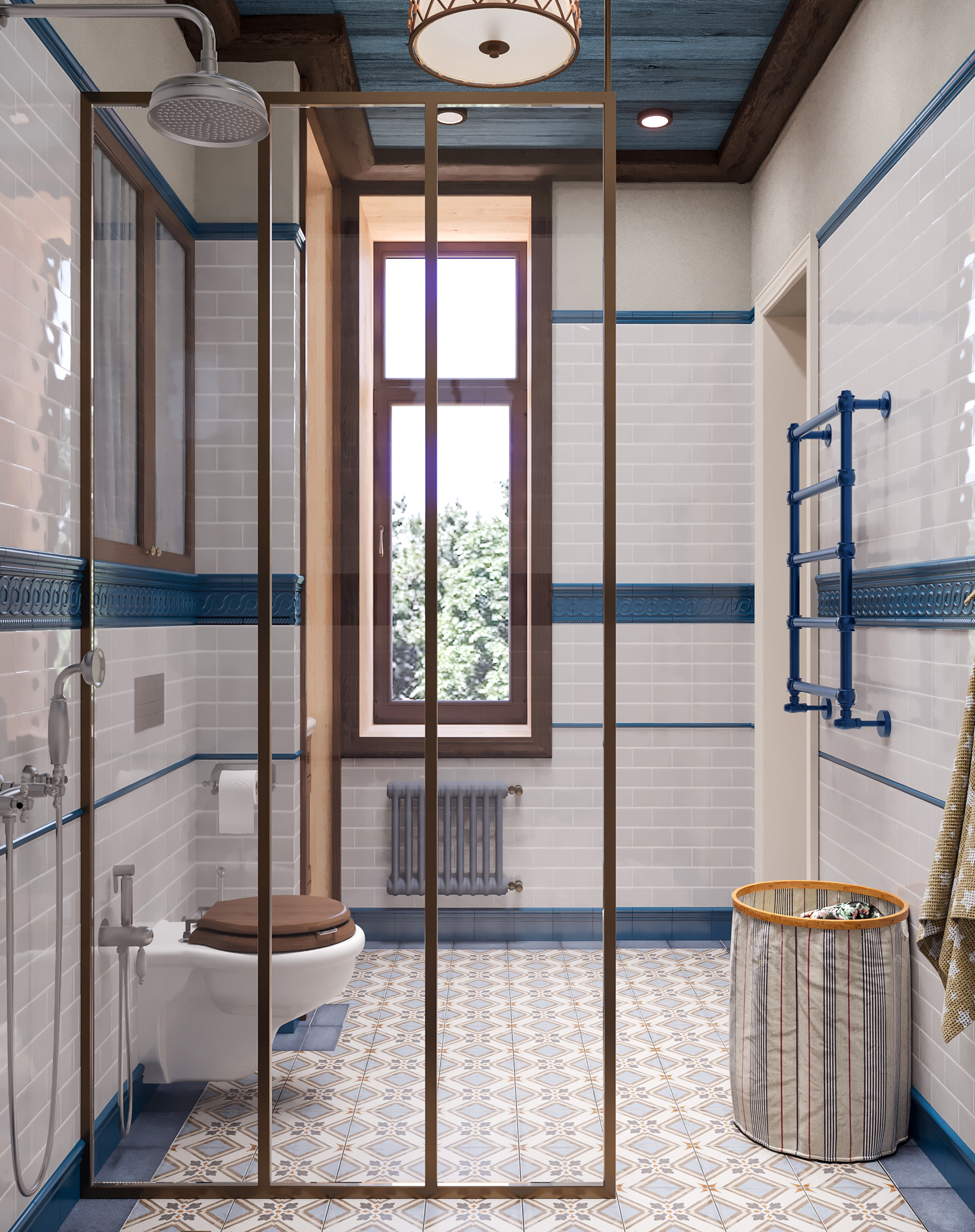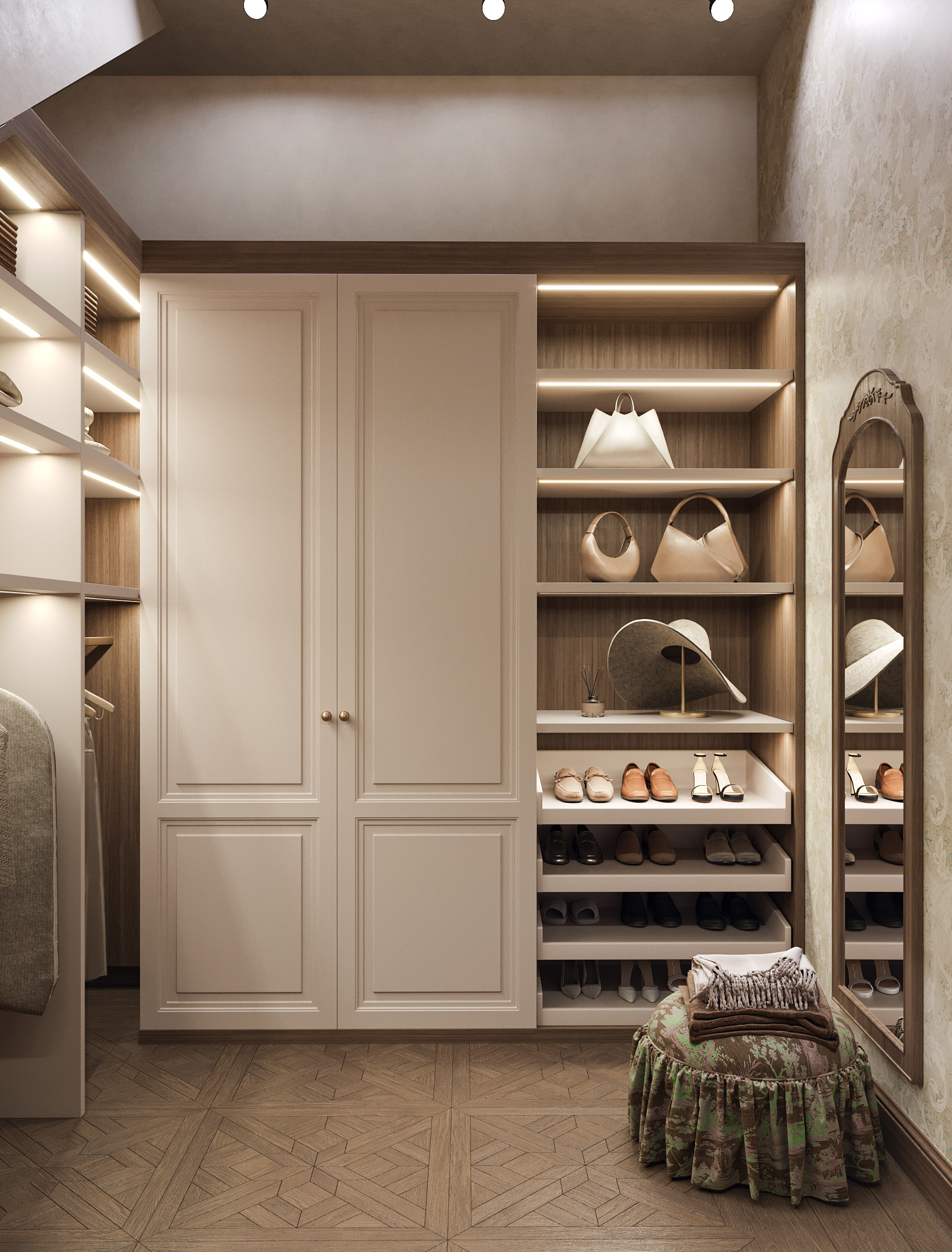 Верхний уровень выполнен как сочетание приватности и вдохновения. Здесь расположена гостевая спальня, а также кабинет, оформленный для работы в уединении. Дополняют этаж гардеробная, санузел и кладовая. Особым акцентом является зимний сад, наполненный светом и зеленью, а также чердачная игровая зона с гамаком и шалашом — настоящее пространство для детей. Потолки высотой до +2,89 м и винтовая лестница добавляют архитектурную выразительность и уют.
