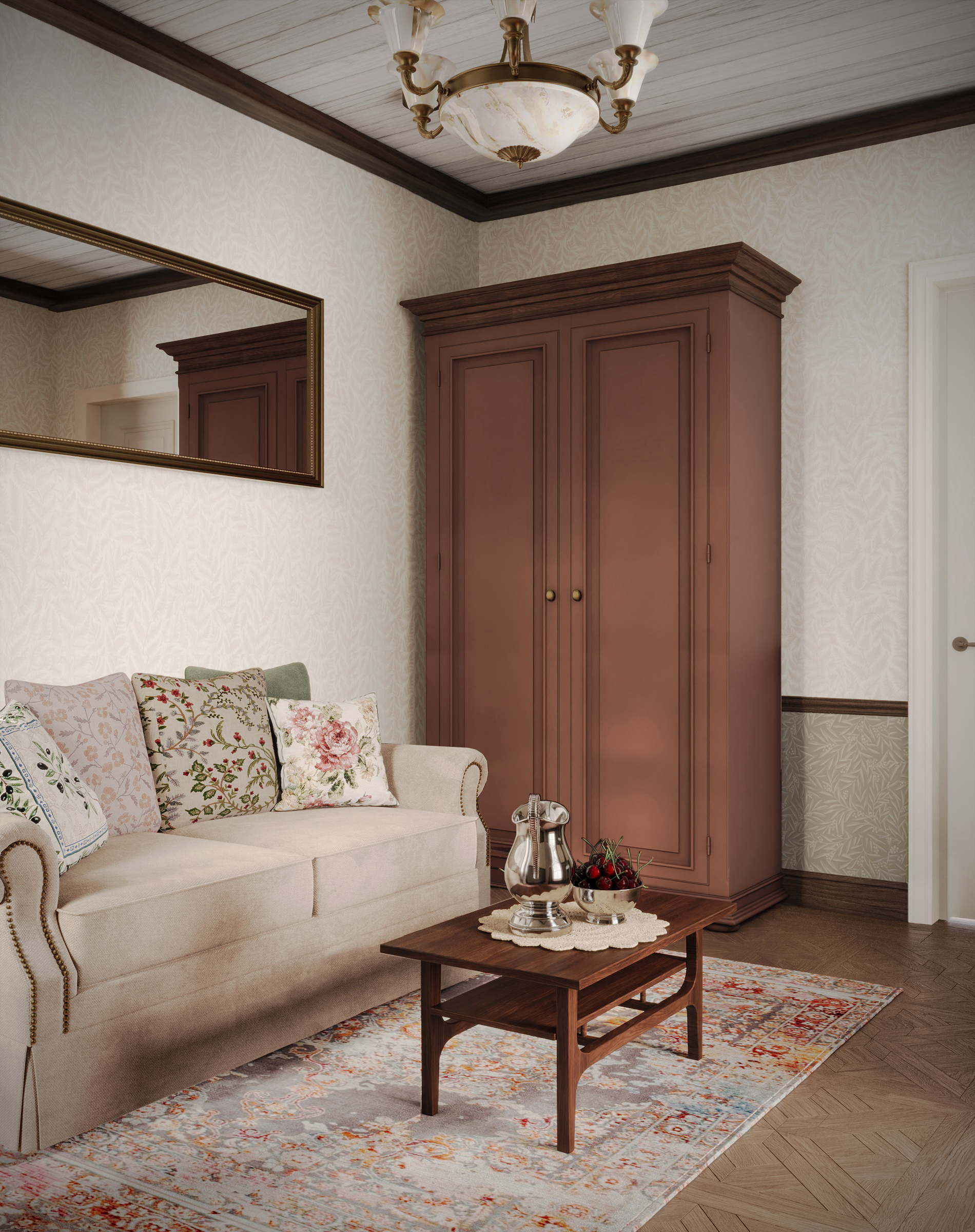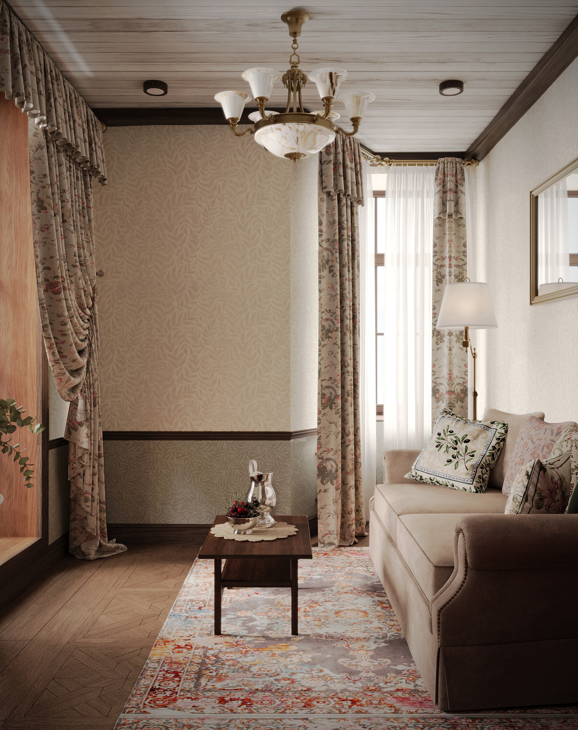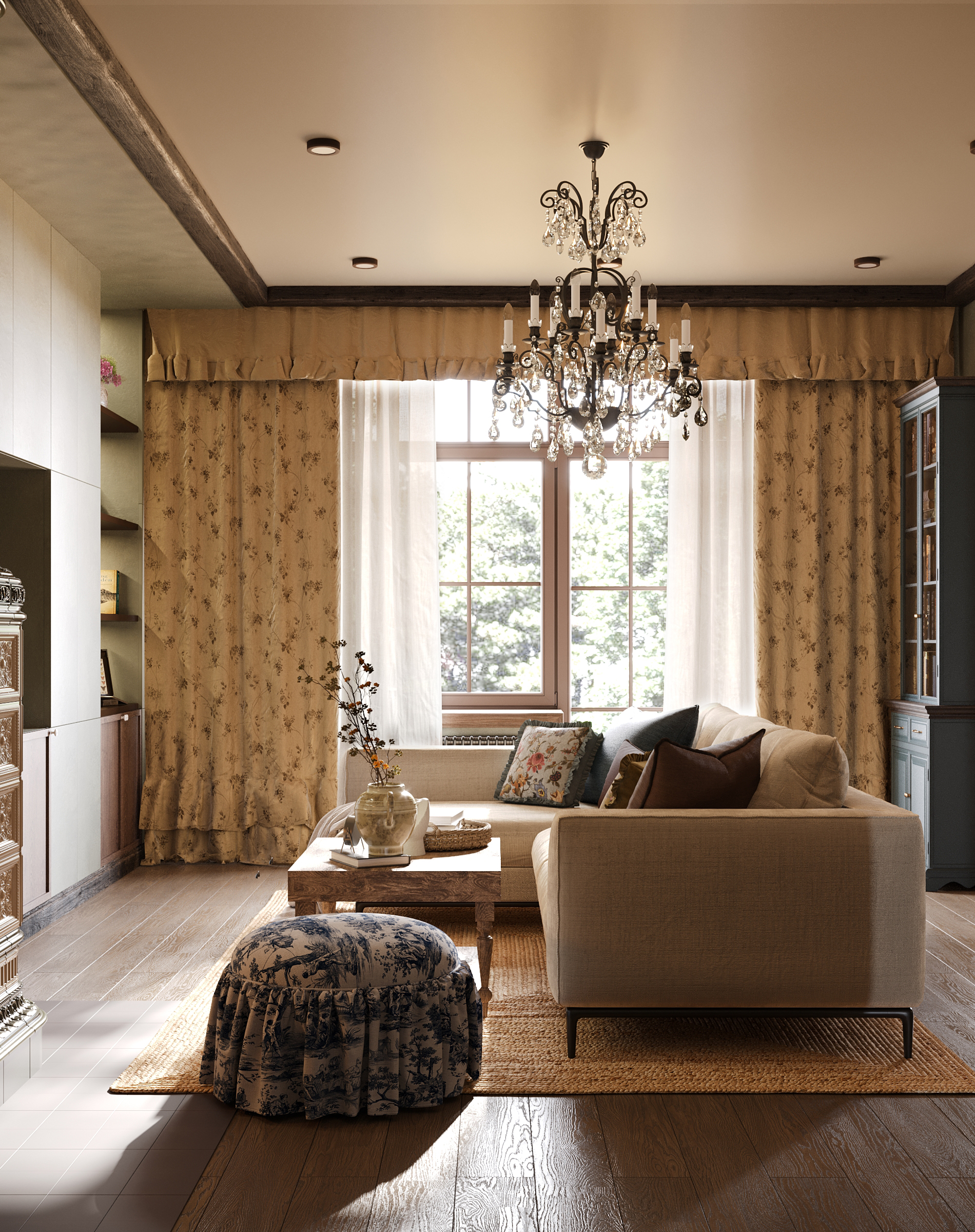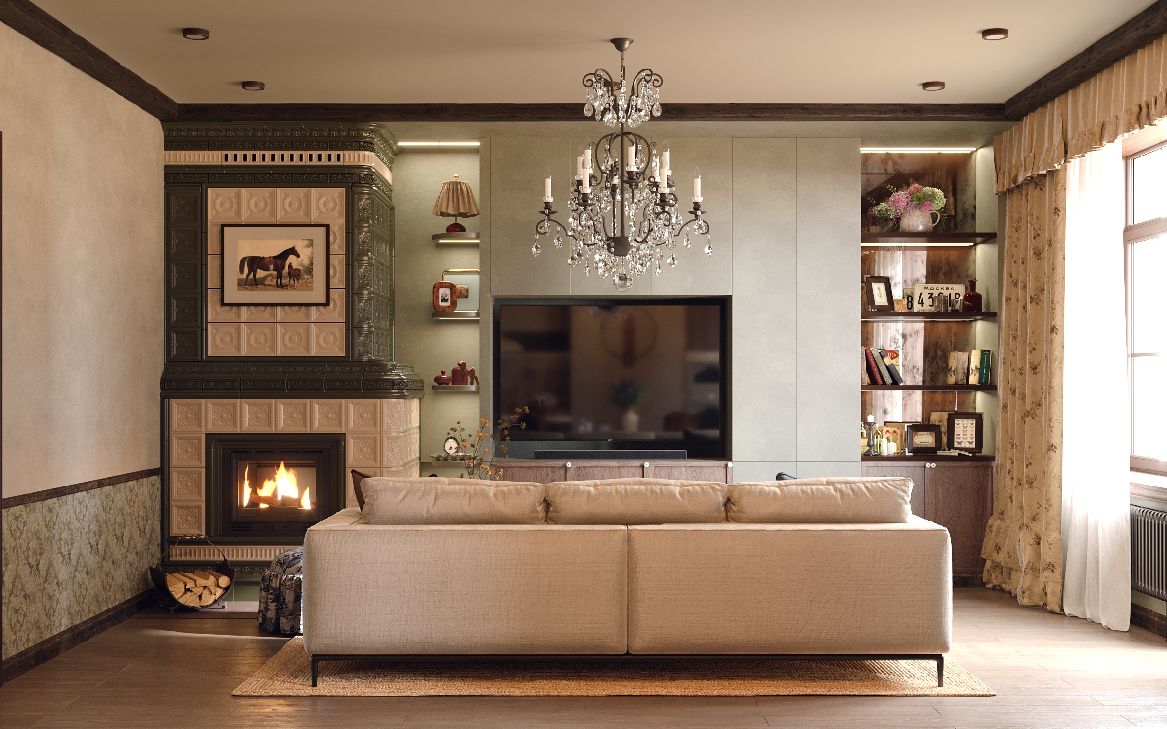 Большие окна и продуманная мебельная композиция подчеркивают свет и объём пространства. Потолки высотой +2,95 м усиливают ощущение простора.