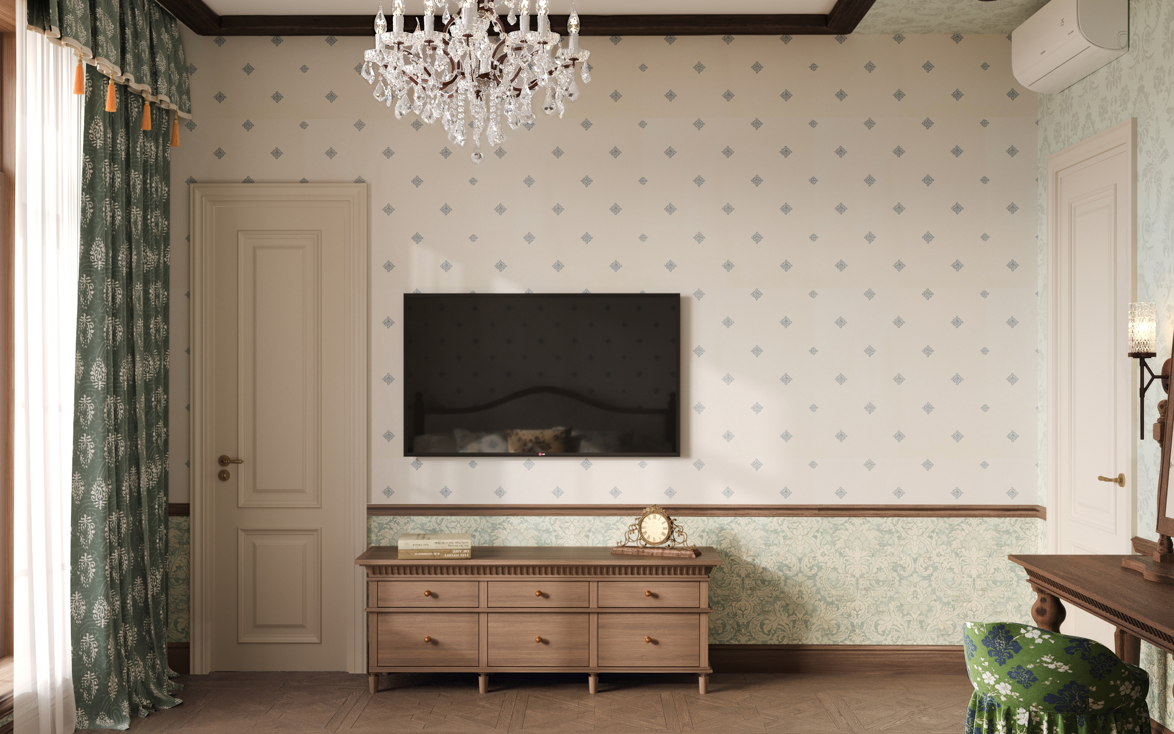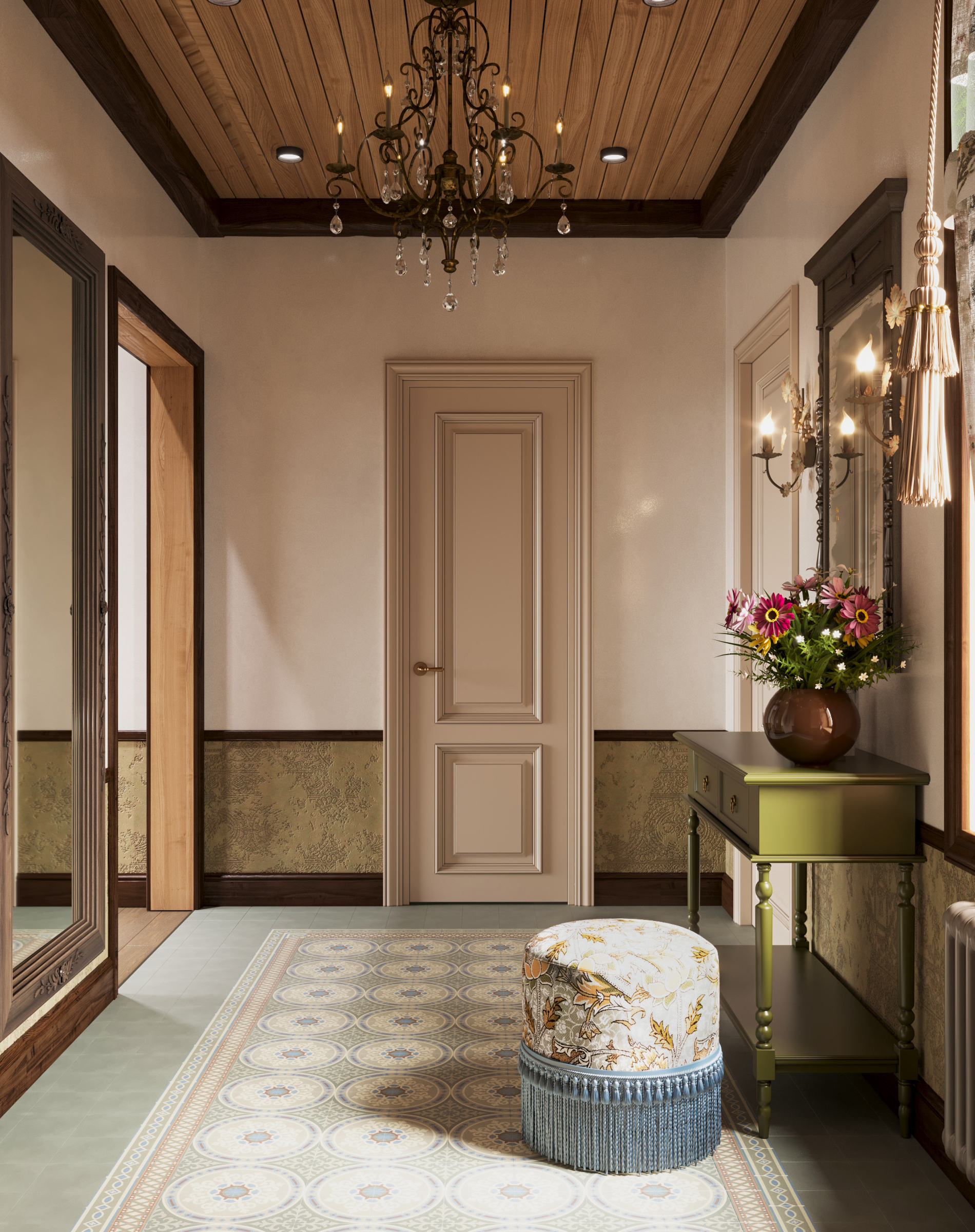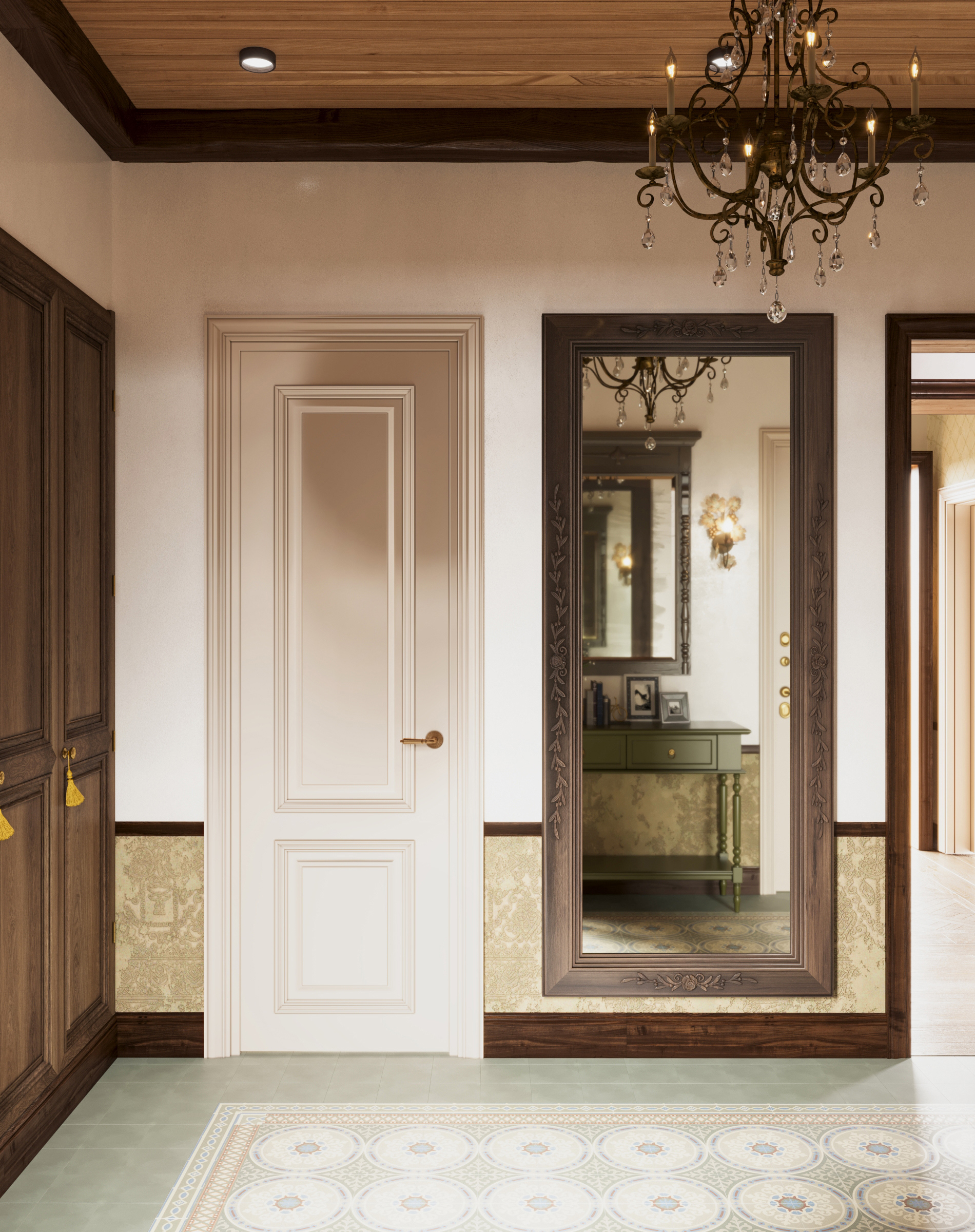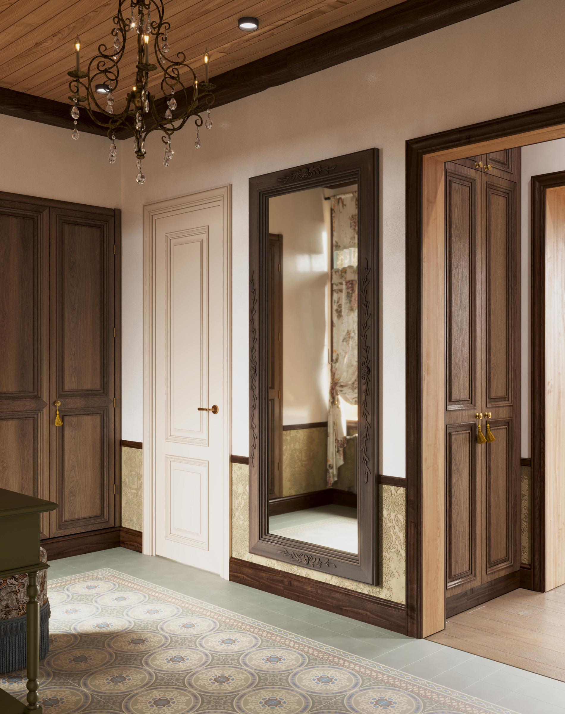 Второй этаж полностью отдан приватным пространствам. Здесь находится мастер-спальня с собственным санузлом, просторная детская комната и отдельный детский санузел. Создана комната отдыха/няни, а для здоровья — полноценный домашний спортзал с тренажёрами и зеркалами. Все помещения объединены удобным коридором и лестничным холлом, высота потолков здесь достигает +3,05 м, что придаёт лёгкость и элегантность планировке.