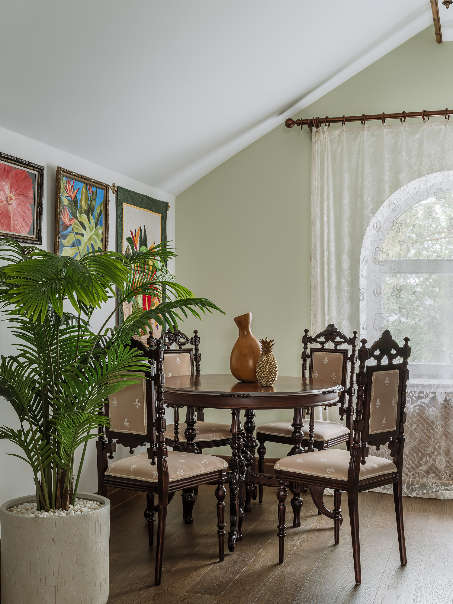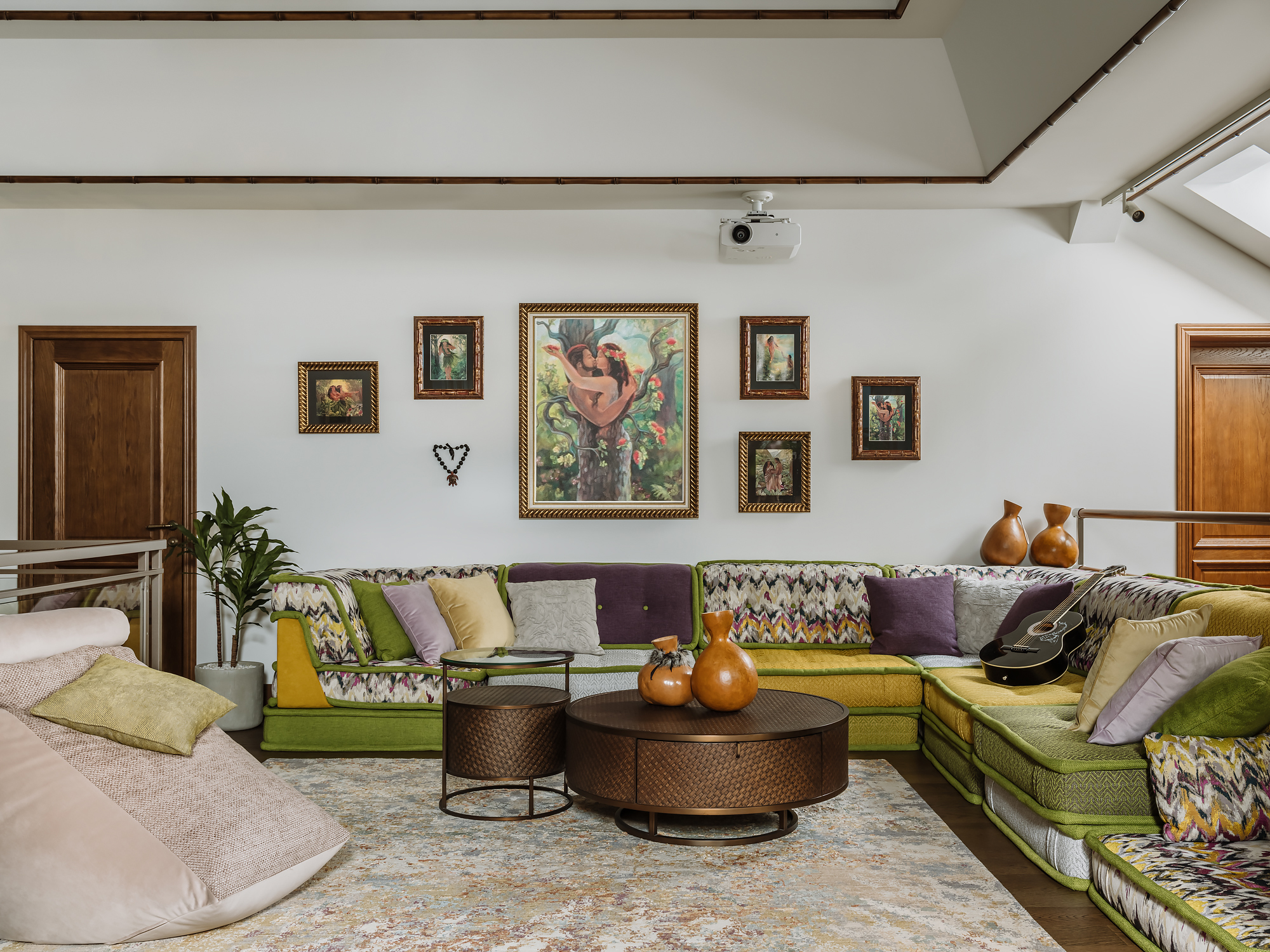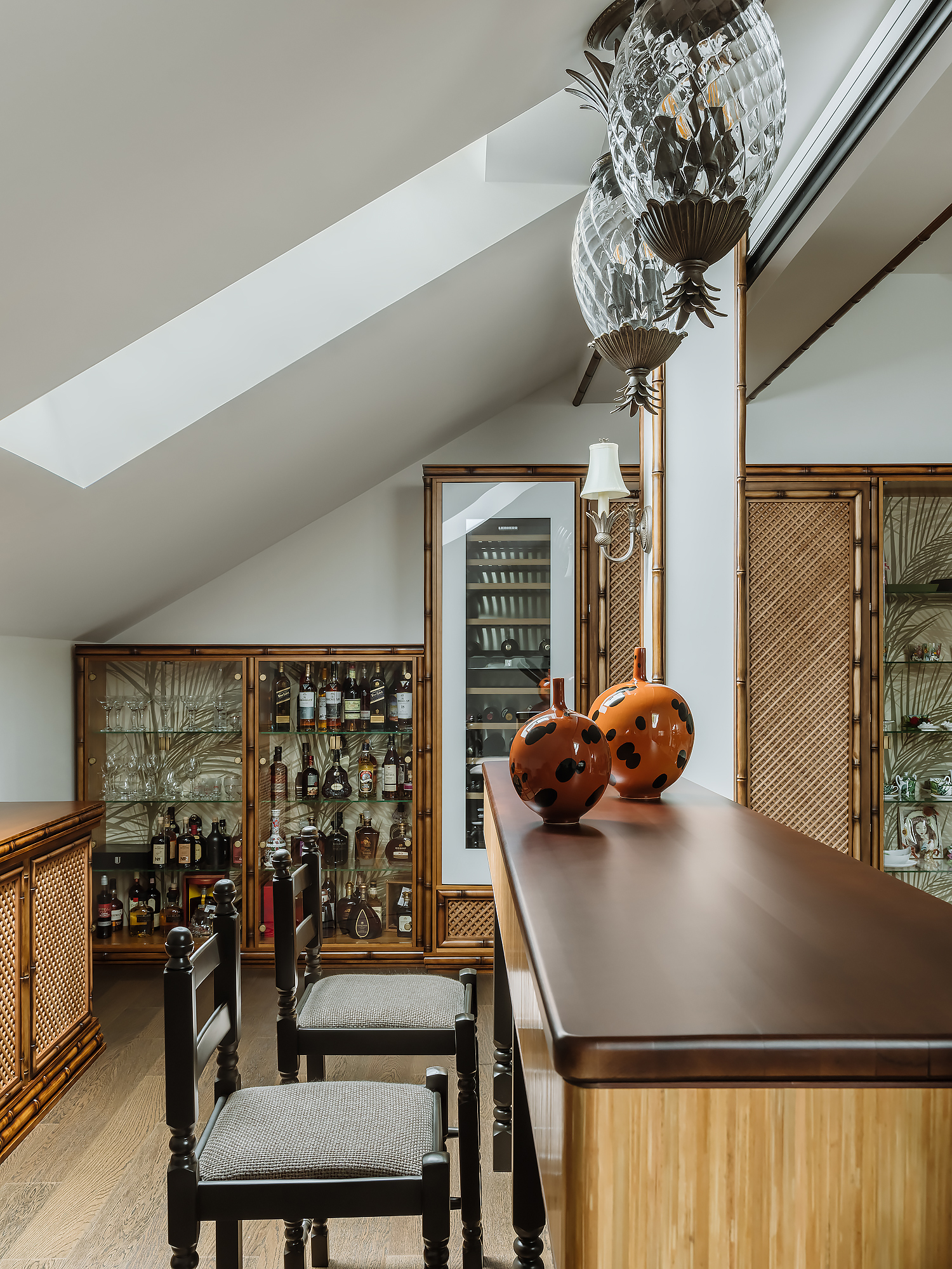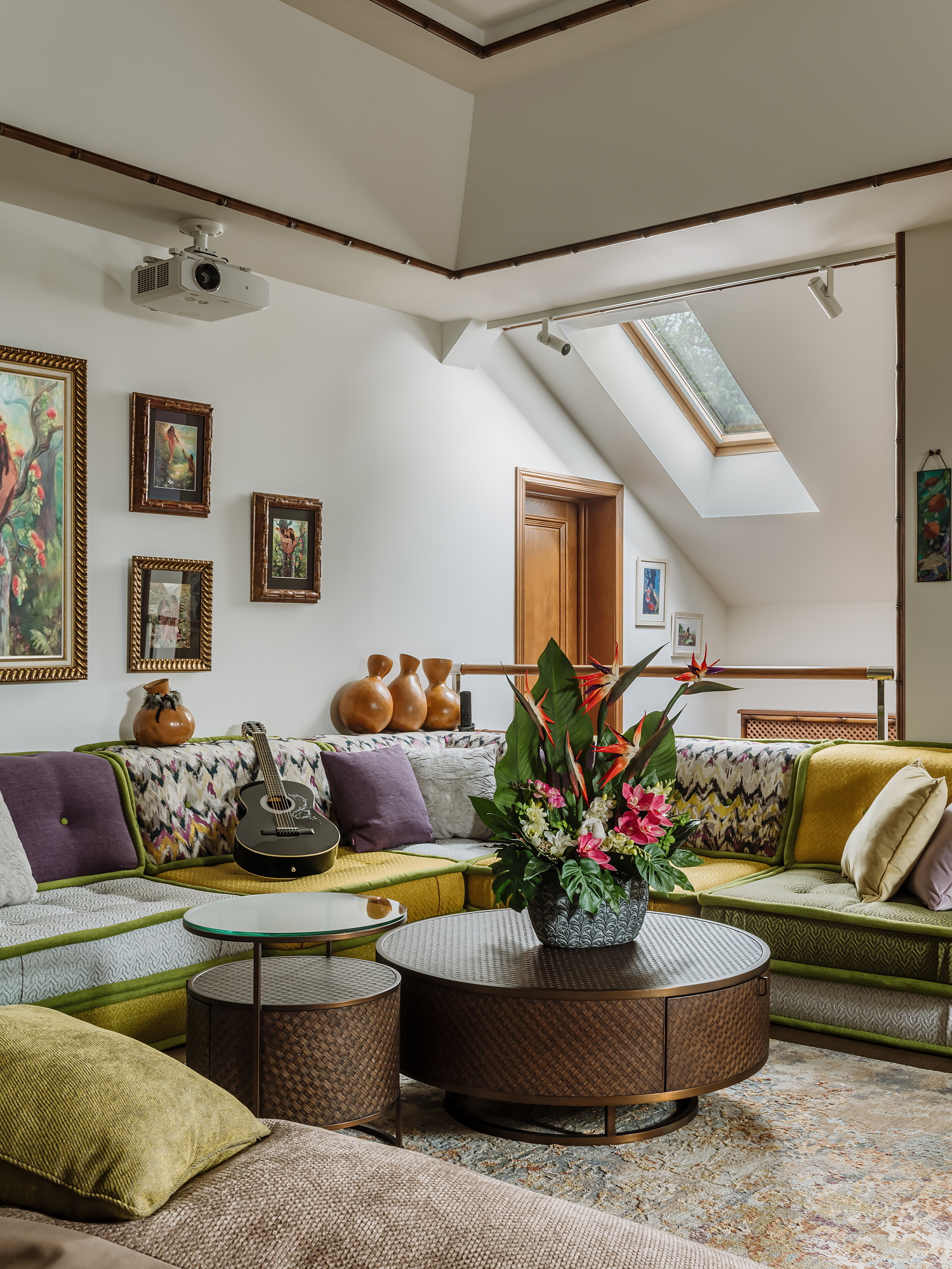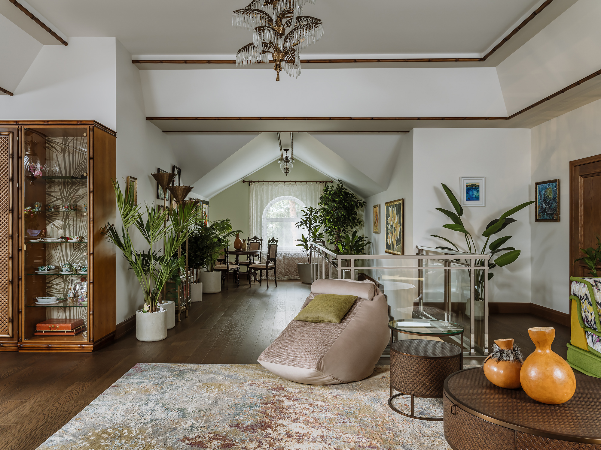 В этом проекте нашей задачей было переделать готовое пространство от застройщика в соответствии с пожеланиями клиентов и цветовой гаммой по фен-шуй, в минимальные сроки и с наименьшими разрушениями. Третий этаж дома был полностью отремонтирован с нуля и у нас получилось создать интересный дизайн в гавайском стиле, который полностью отражает хобби хозяйки дома.