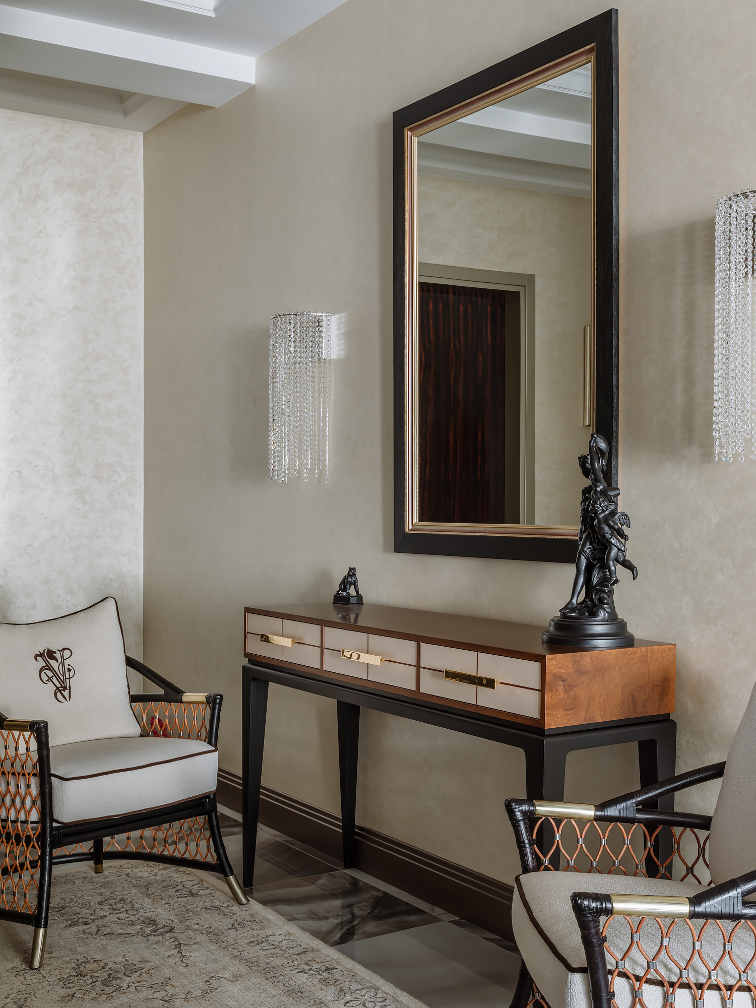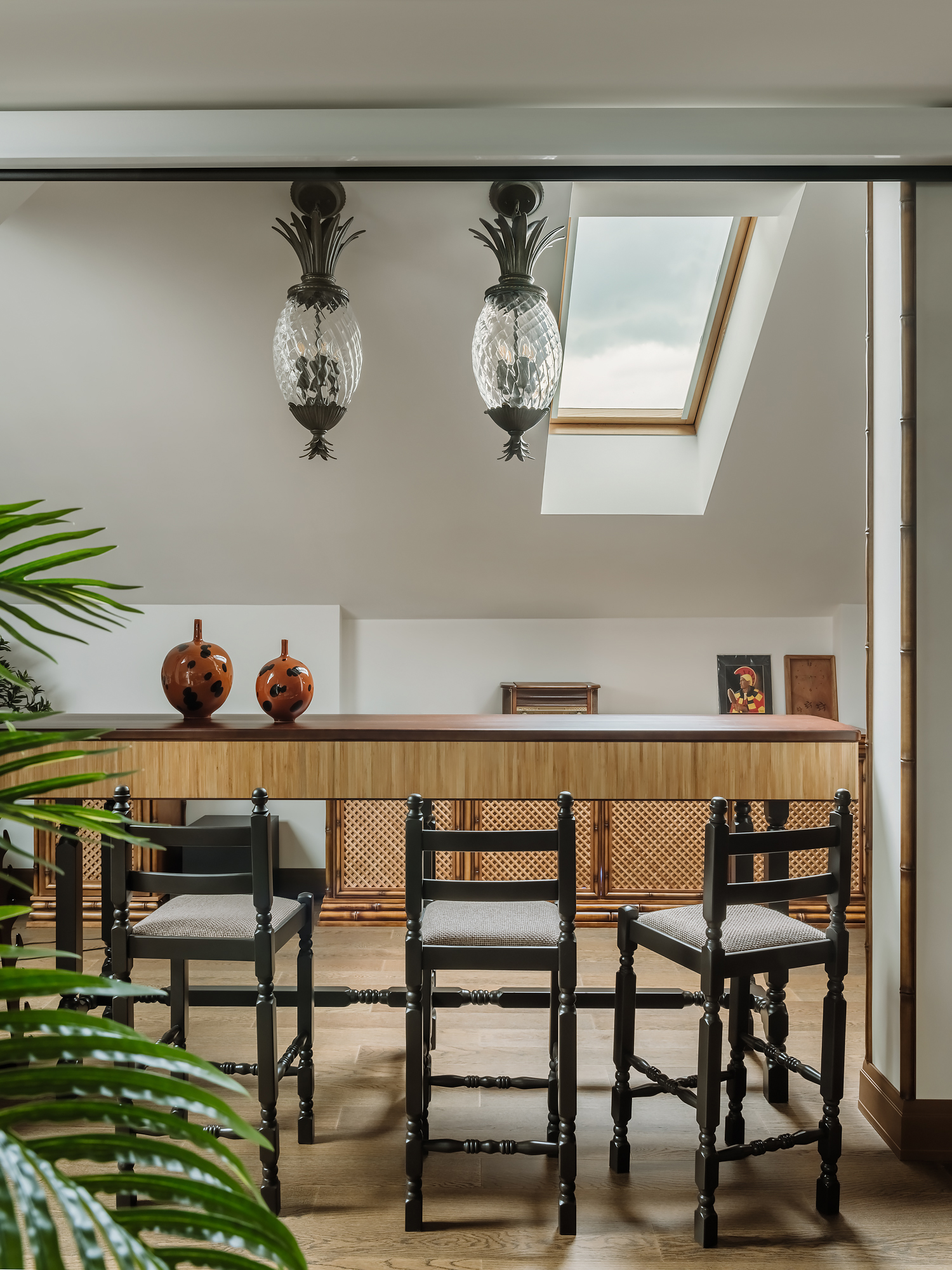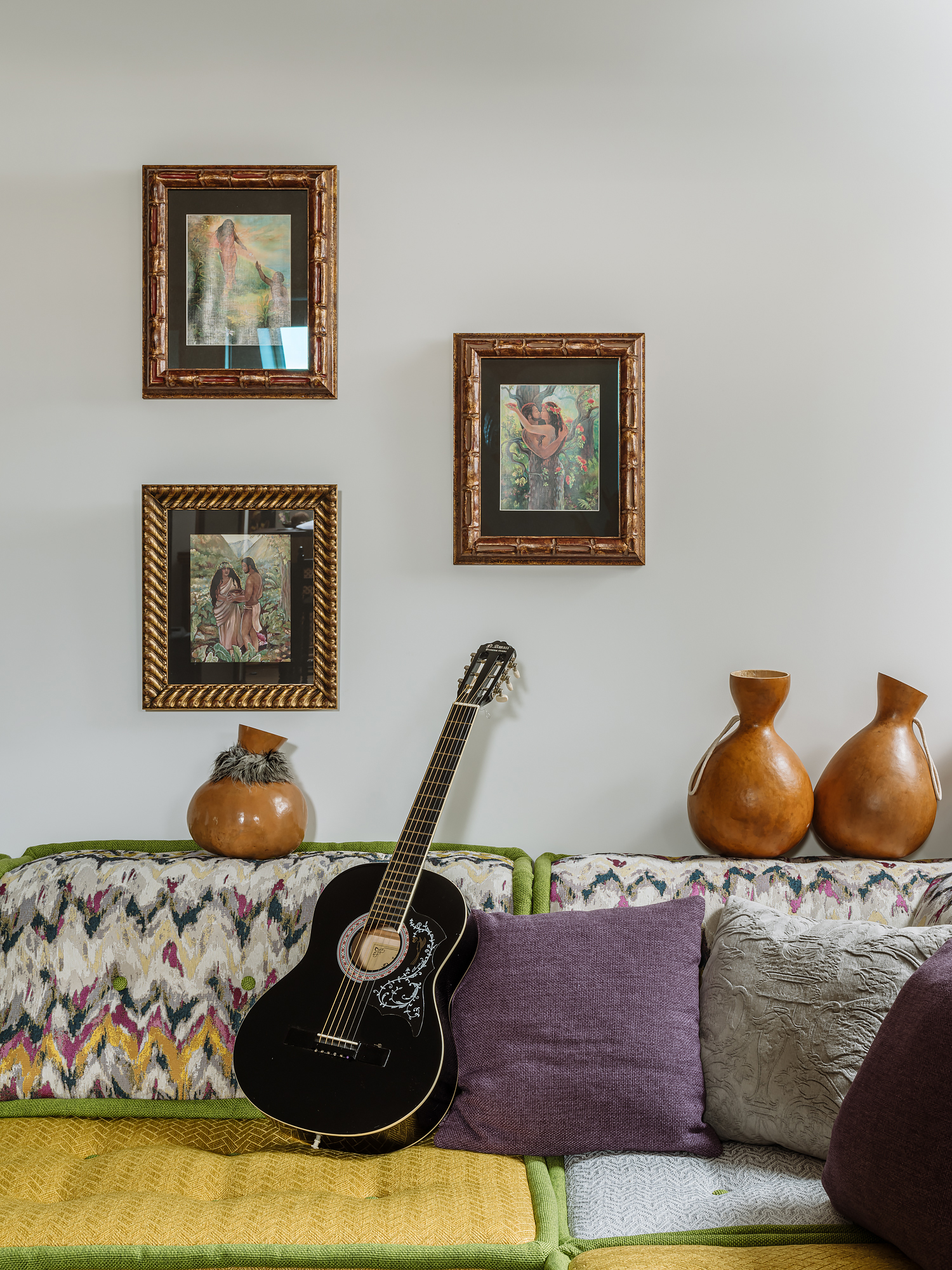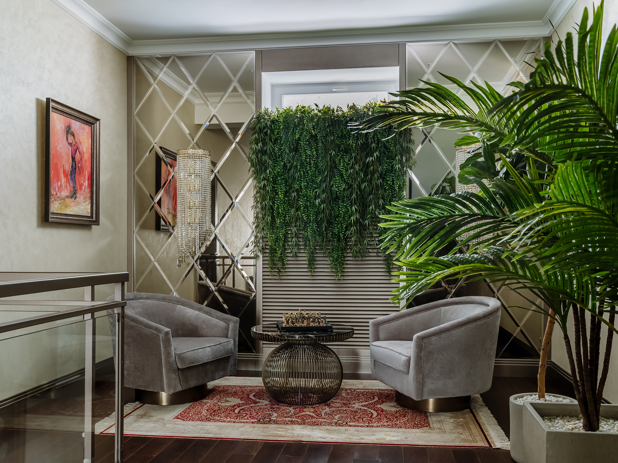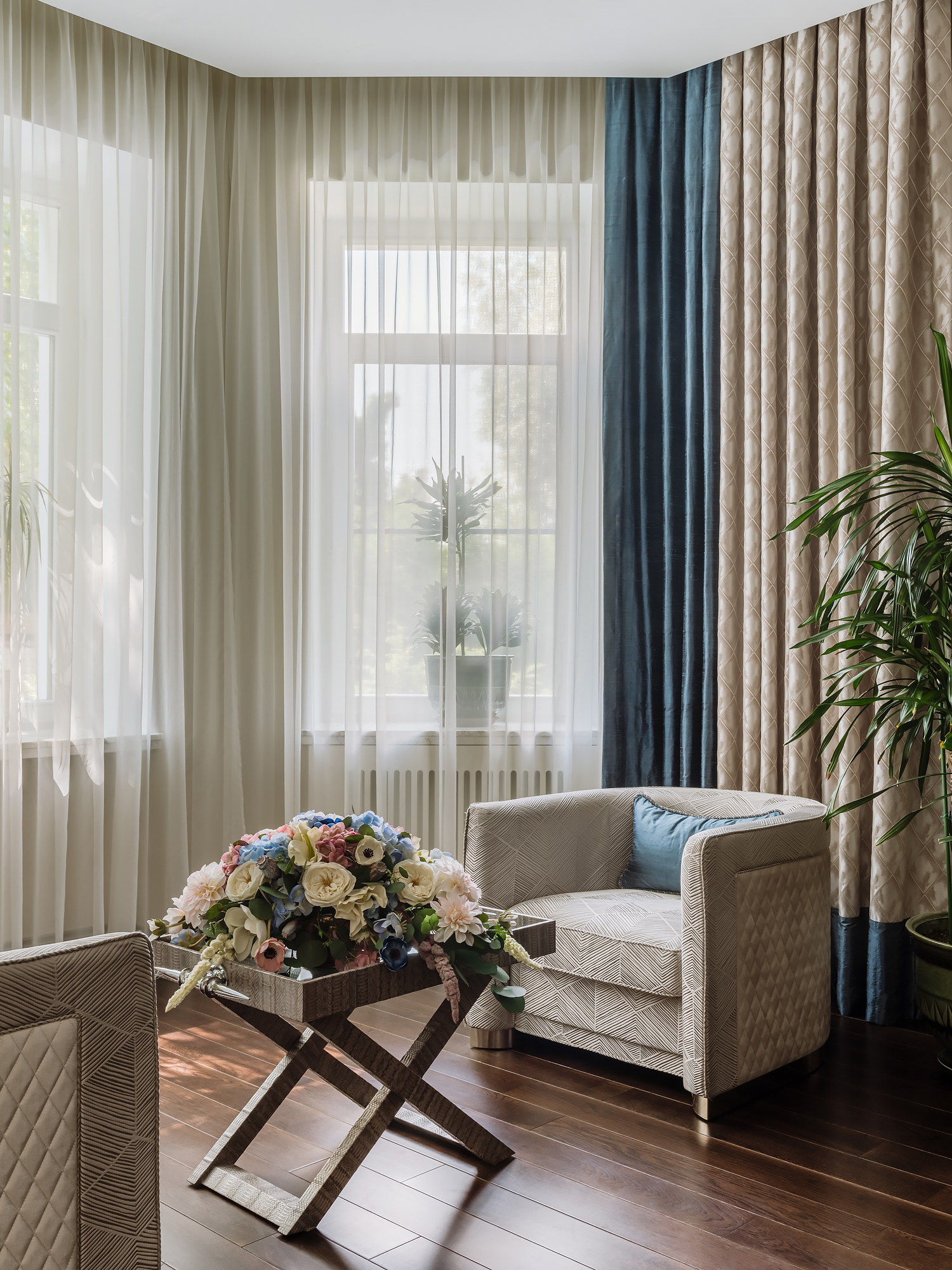 В этом проекте нашей задачей было переделать готовое пространство от застройщика в соответствии с пожеланиями клиентов и цветовой гаммой по фен-шуй, в минимальные сроки и с наименьшими разрушениями. Третий этаж дома был полностью отремонтирован с нуля и у нас получилось создать интересный дизайн в гавайском стиле, который полностью отражает хобби хозяйки дома.