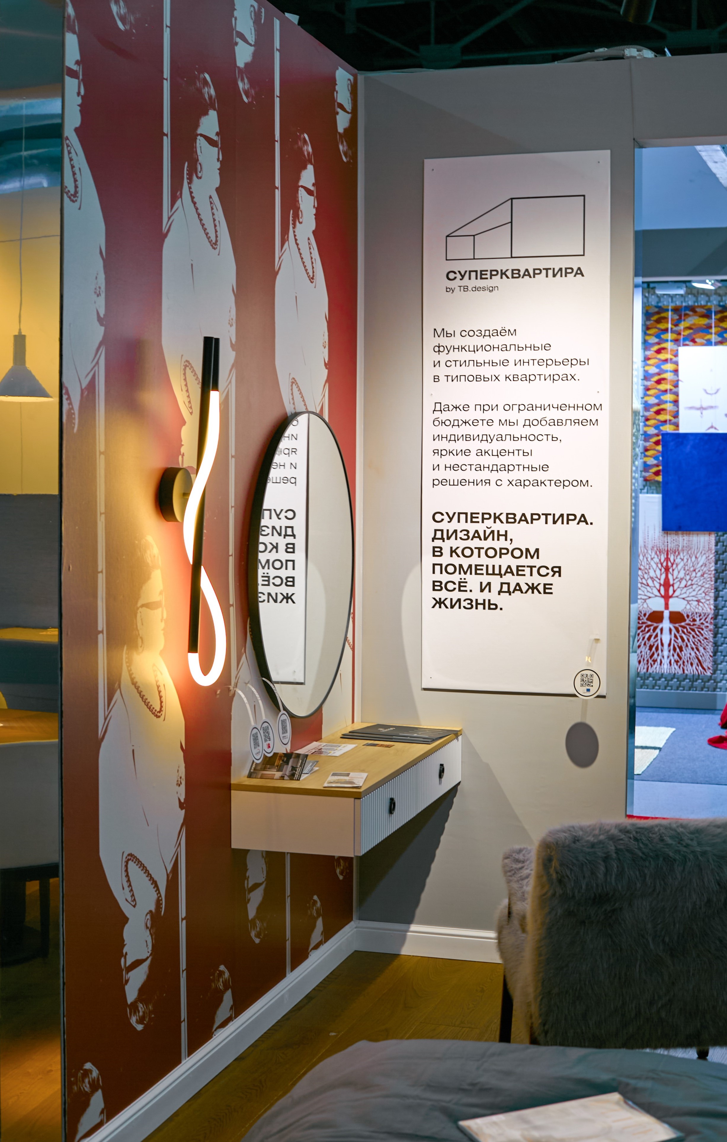 Наш стенд - это реальный пример того, как даже в типовой квартире можно создать идеальное пространство, где каждый сантиметр интерьера будет работать с максимальной пользой, сохранив при этом стиль, функциональность и визуальную лёгкость.