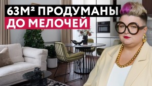 - В зоне гостиной расположена зона отдыха: большой уютный диван, кресло и журнальные столики. К этой зоне также присоединен балкон. Кухня небольшая, включает в себя все самое необходимое. Молодая заказчица редко готовит дома. Зону спальни мы разделили на две функциональные части: гардеробная и сама спальня. Гардеробная будет отделена от спальни при помощи красивой раздвижной перегородки. Санузел также получился многофункциональным. Здесь расположена ванна, умный унитаз, зона раковины, а также колонна со стиральной и сушильной машиной с системой хранения.