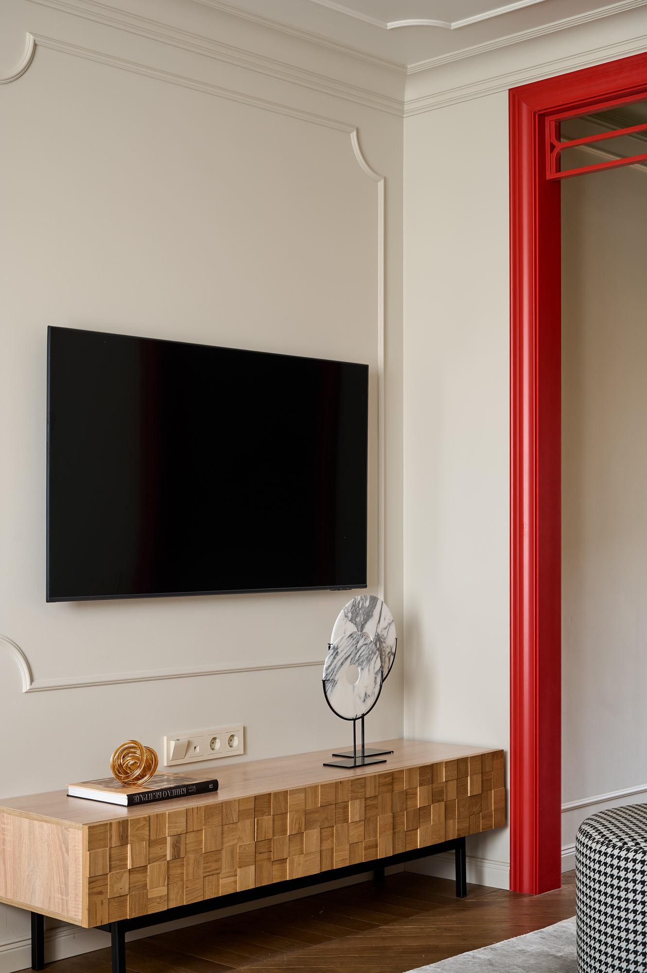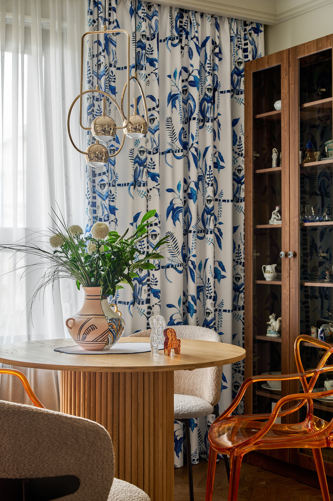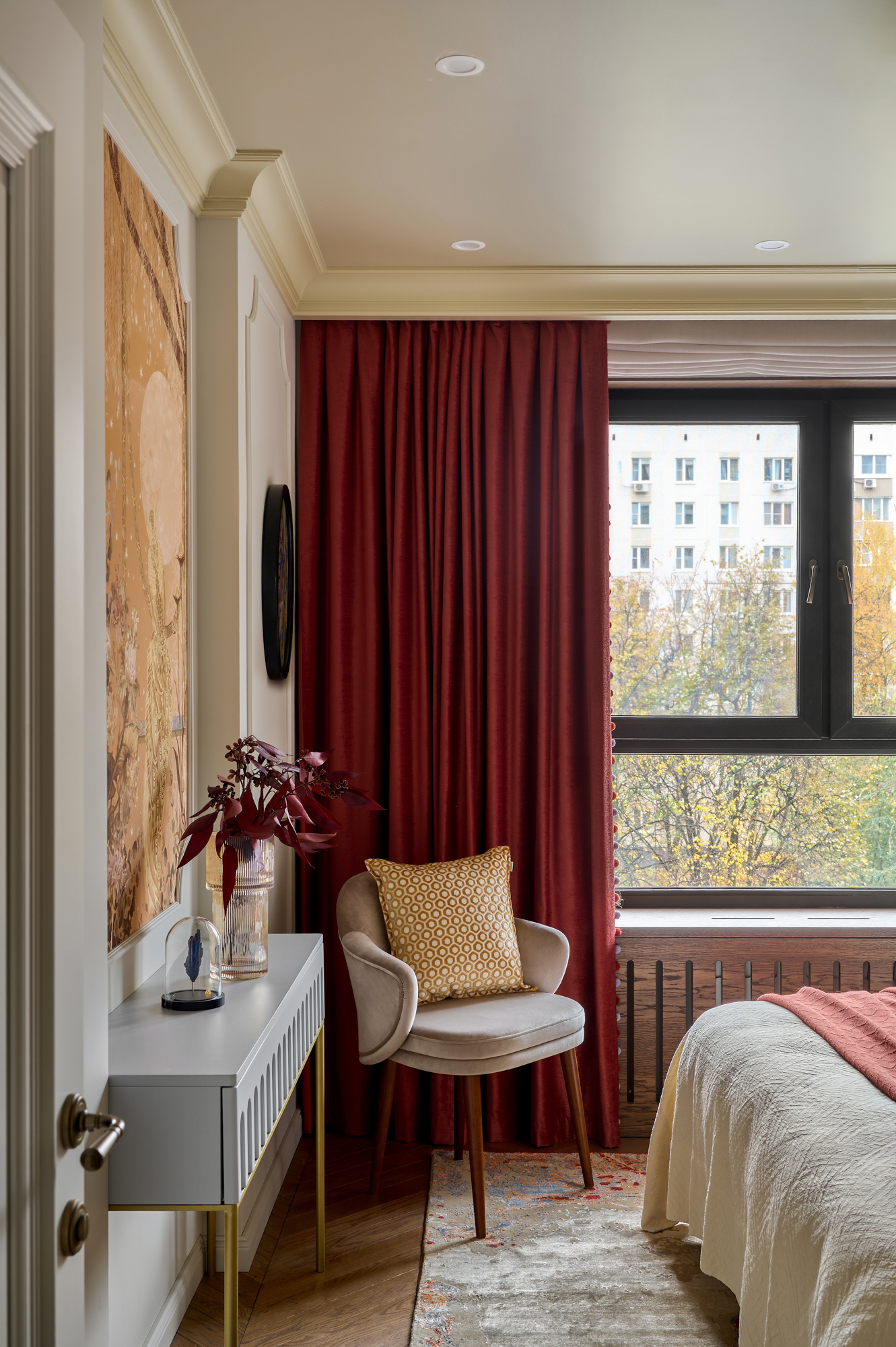 В дизайне мы сделали сочетание светлых пастельных неоклассических оттенков с яркими акцентными предметами, что будет придавать пространству контрастность форм, цветов и фактур.