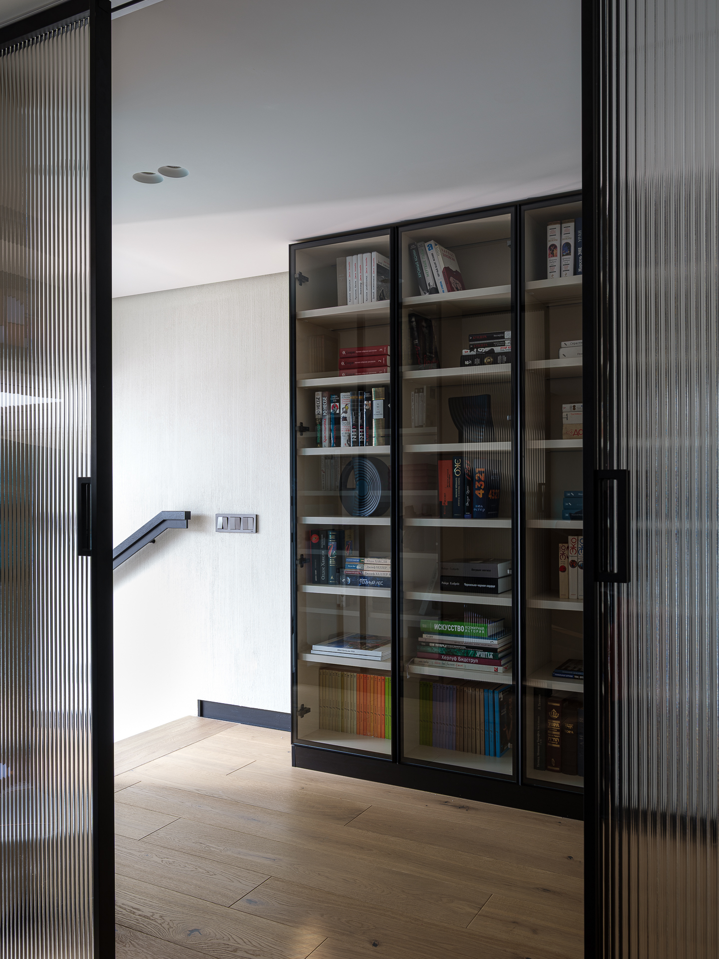 Так как семья большая, необходимо место для хранения повседневной, сезонной одежды и обуви. В наличии у заказчиков коллекции взрослой и детской литературы, коллекции музыки на разных носителях, необходимо было предусмотреть функциональные зоны для хранения.