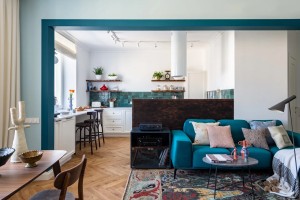 Заказчики – молодая семейная пара, которая в будущем планирует ребенка. Они большие фанаты музыки: хорошая аппаратура, виниловый усилитель, пластинки – все это им очень по душе. У заказчиков было важное пожелание: сохранить старый винтажный стеллаж, так как им очень нравятся винтажные вещи.