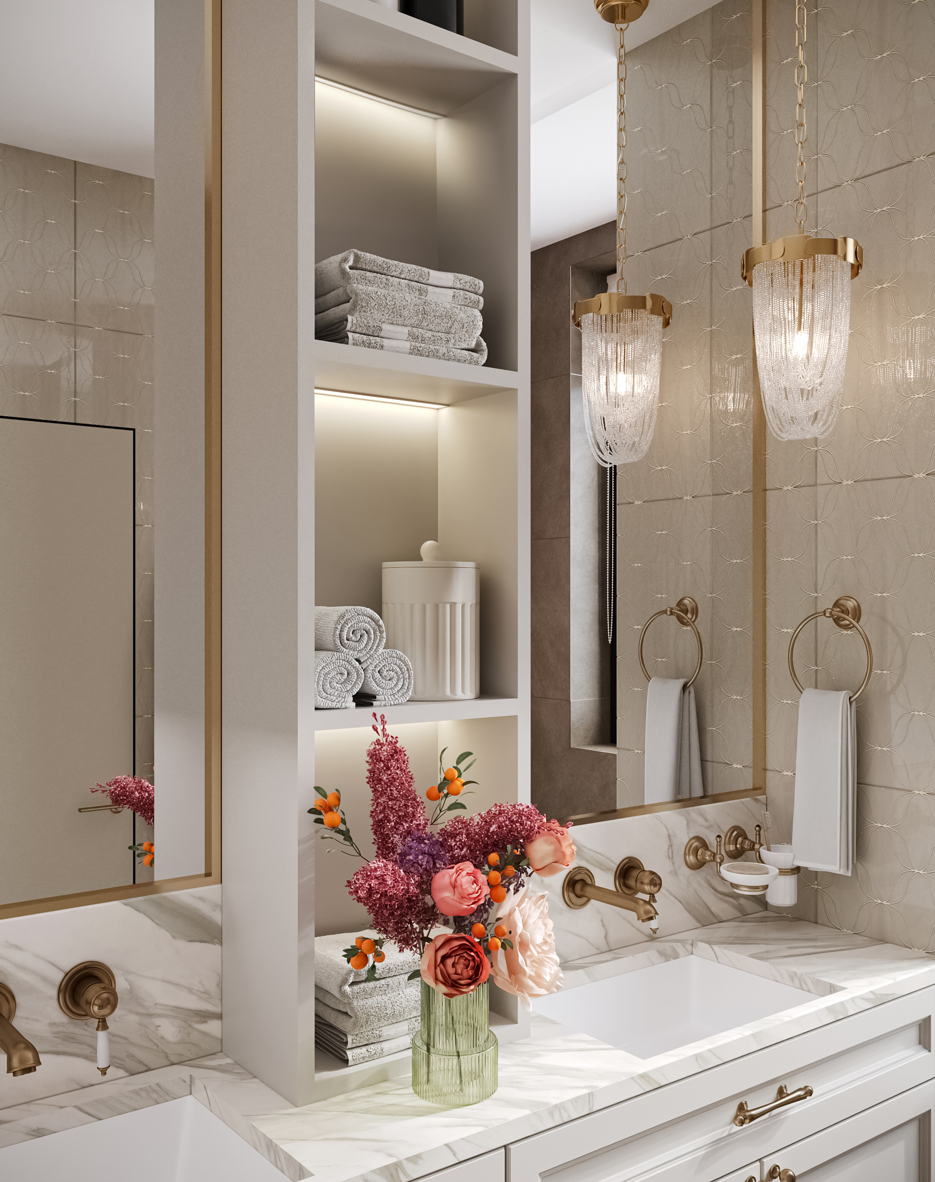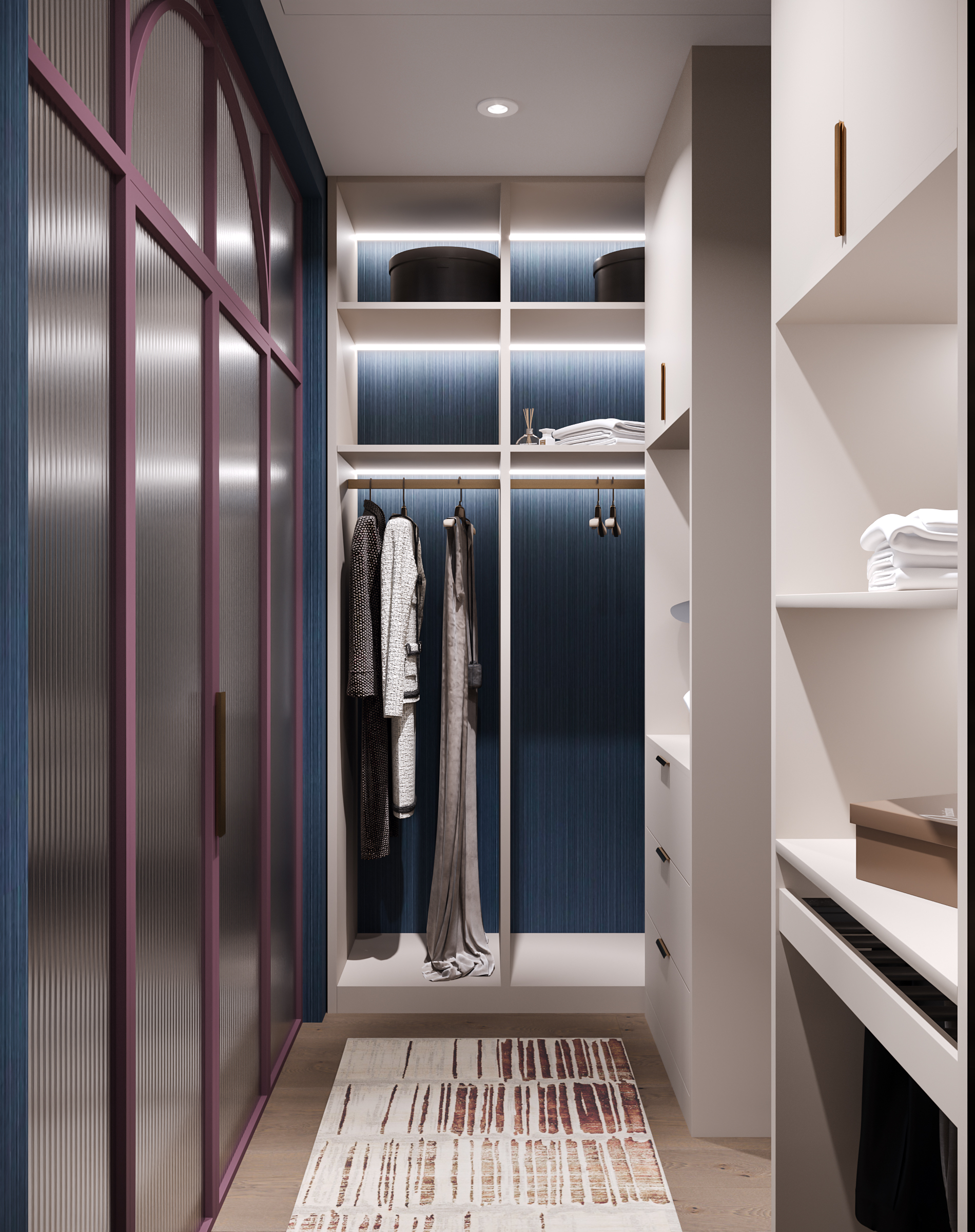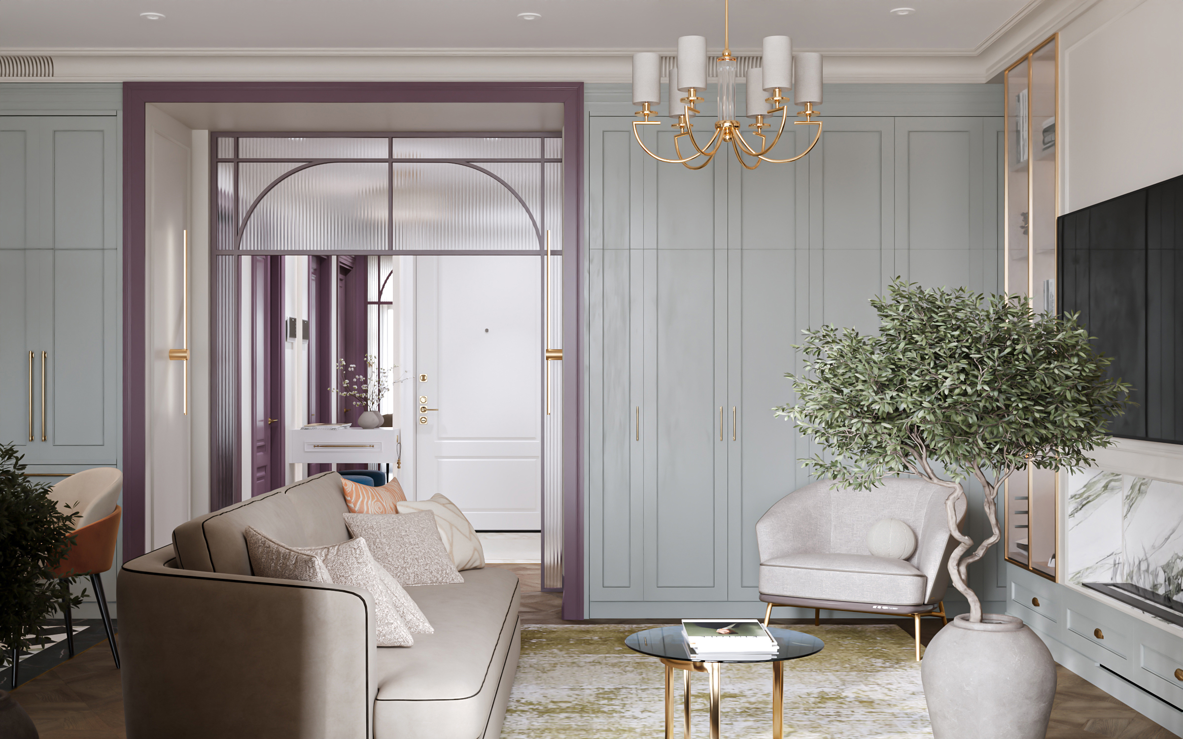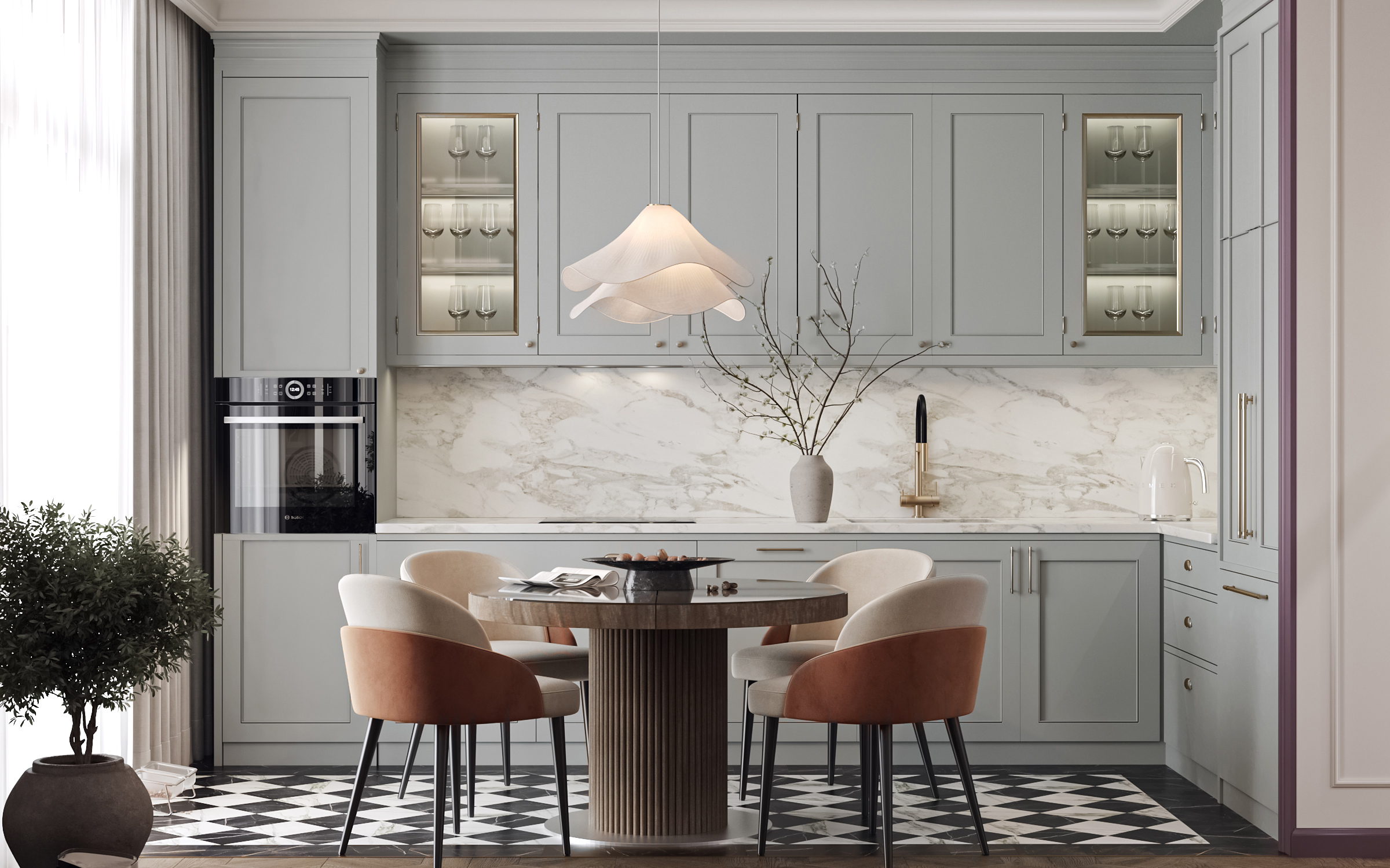 Гостиная с кухней и столовой стала сердцем квартиры — здесь можно собираться всей семьёй и принимать гостей. Гардеробные и постирочная позволяют поддерживать порядок, а продуманное зонирование делает квартиру не только эстетичной, но и по-настоящему удобной для динамичной семейной жизни. Это современное пространство, в котором комфорт сочетается с элегантностью, а свет и простор становятся главными акцентами интерьера.