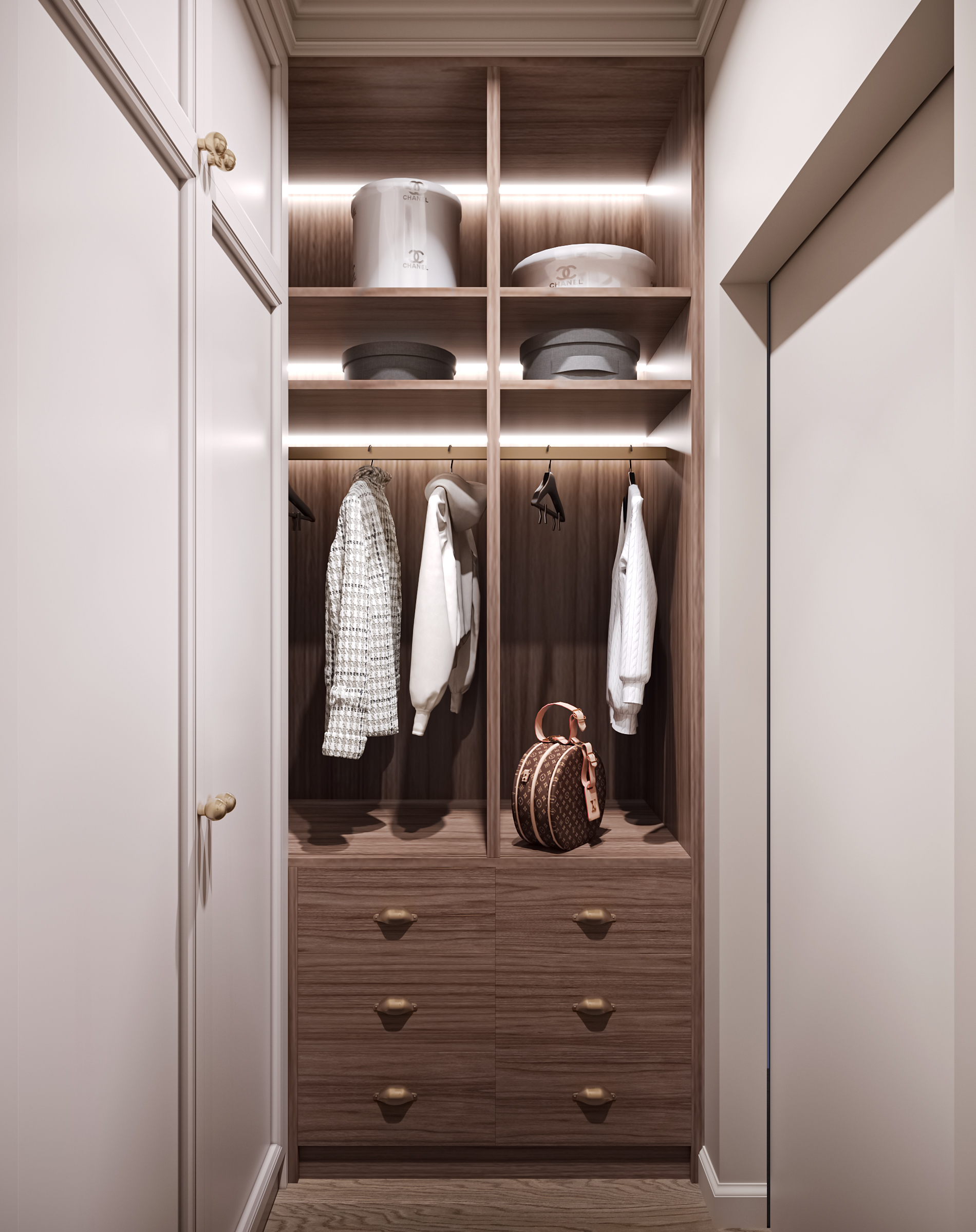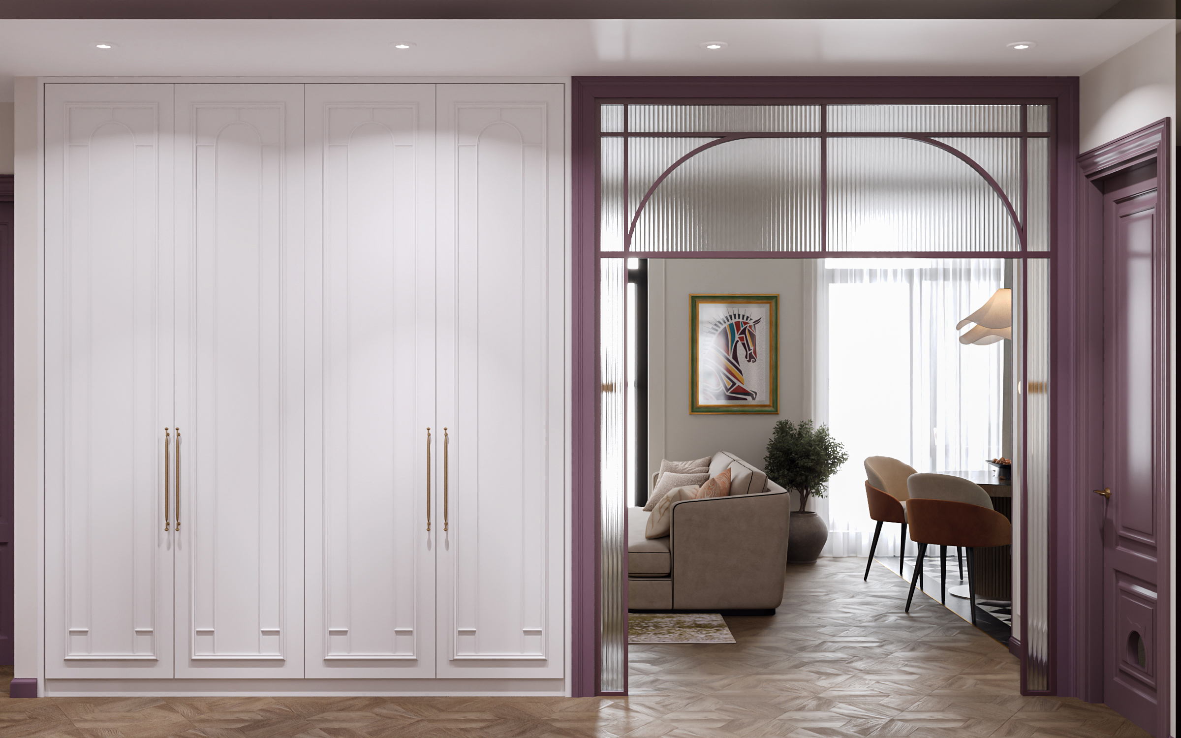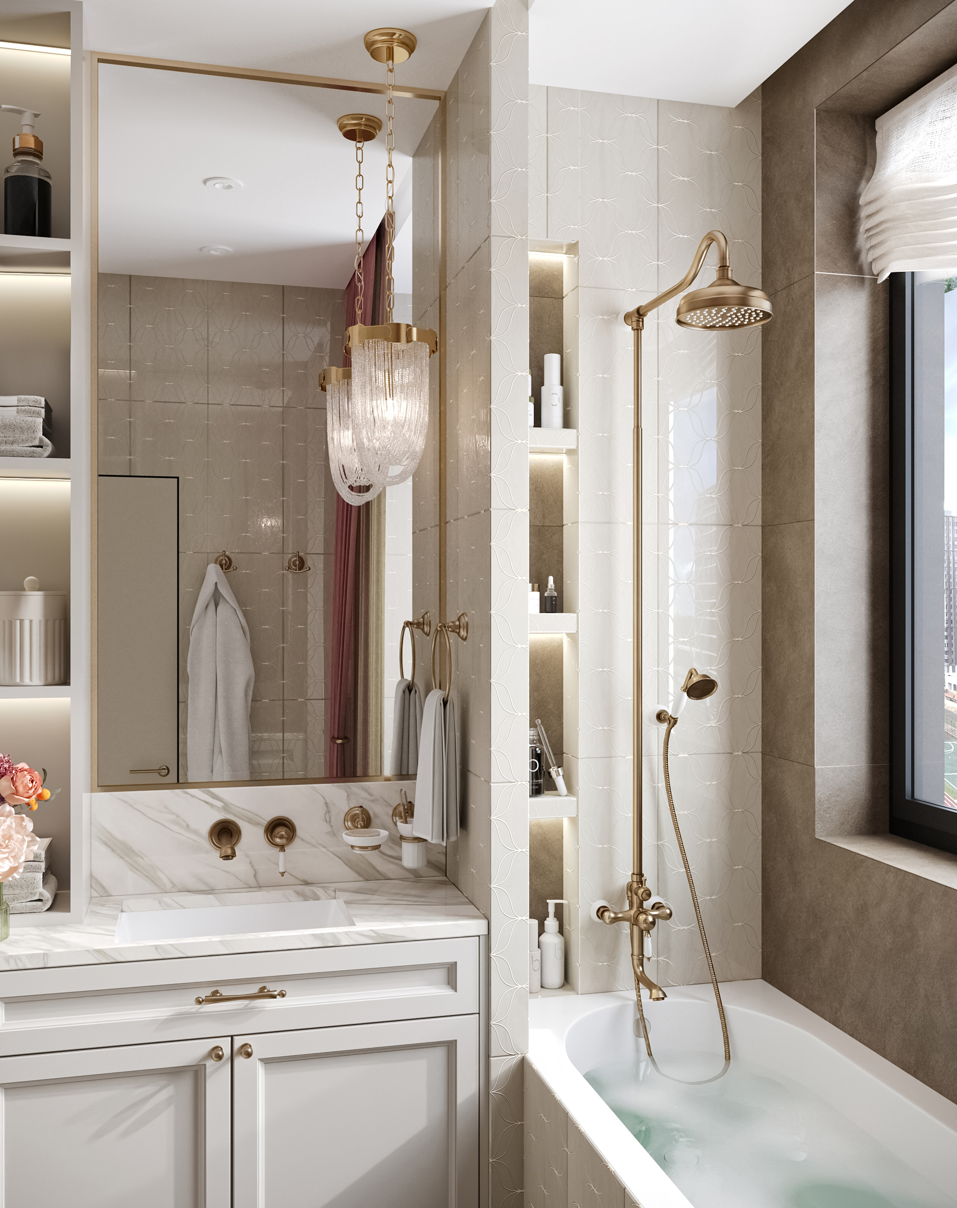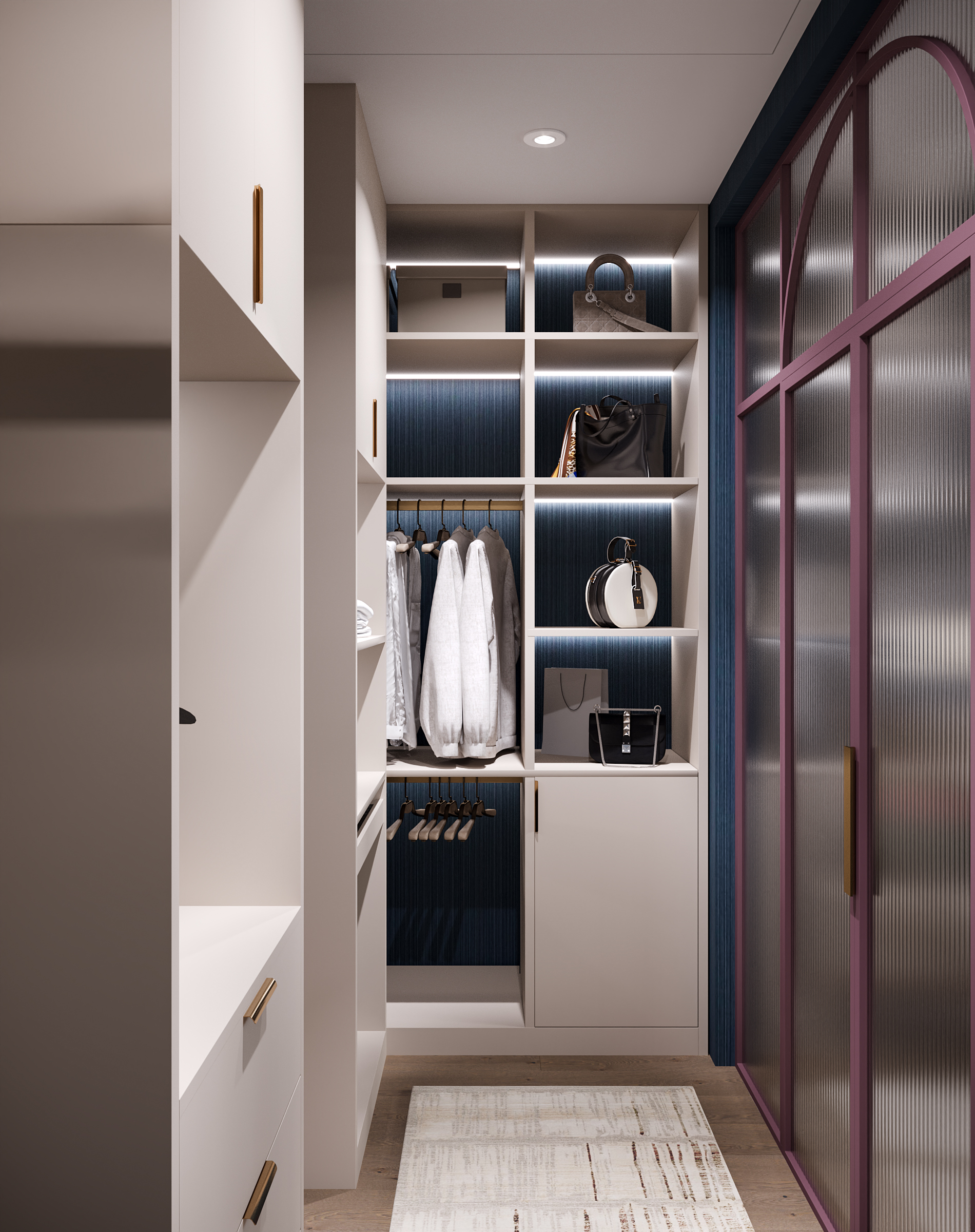 Гостиная с кухней и столовой стала сердцем квартиры — здесь можно собираться всей семьёй и принимать гостей. Гардеробные и постирочная позволяют поддерживать порядок, а продуманное зонирование делает квартиру не только эстетичной, но и по-настоящему удобной для динамичной семейной жизни. Это современное пространство, в котором комфорт сочетается с элегантностью, а свет и простор становятся главными акцентами интерьера.