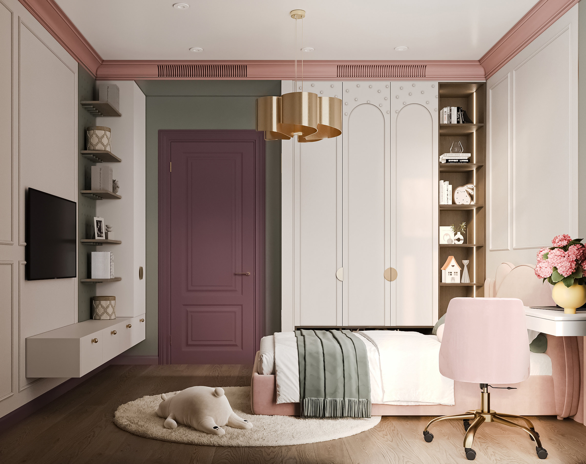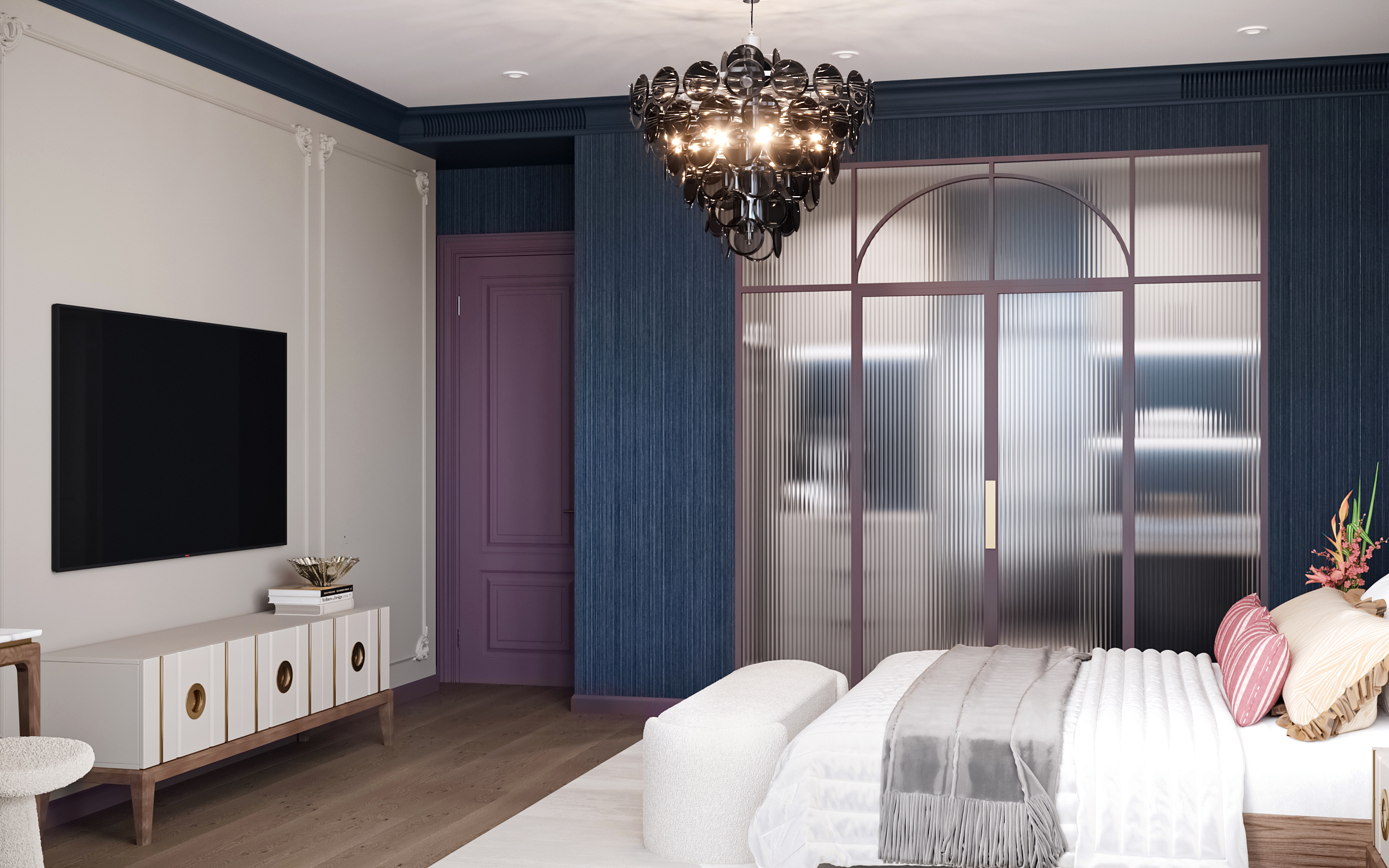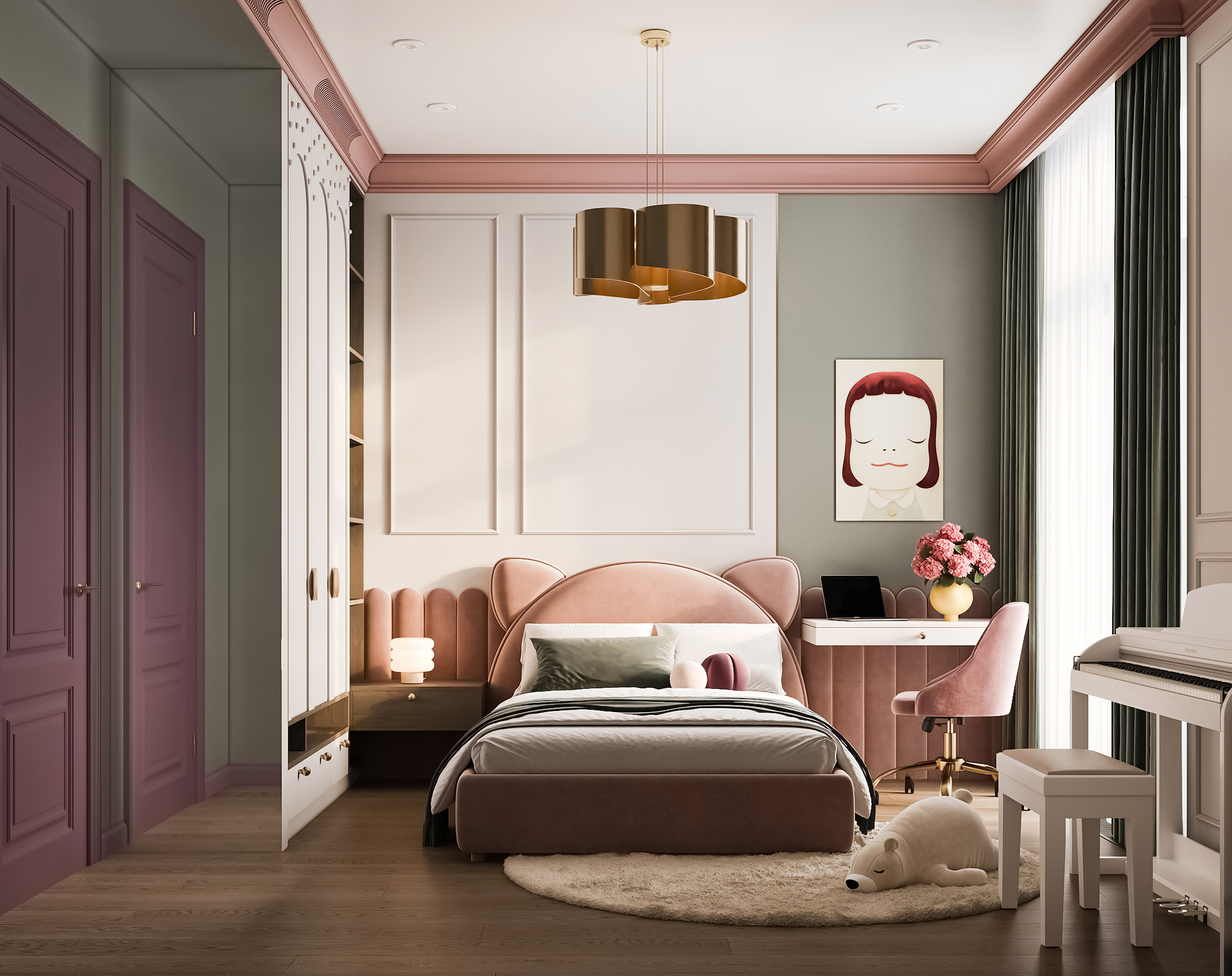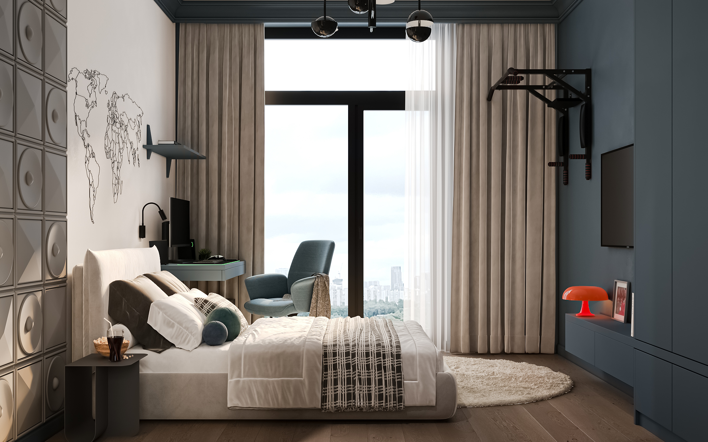 Эта просторная квартира в ЖК «Остров» создана для семьи: супруги и двое детей — мальчик и девочка. Планировка выстроена так, чтобы у каждого было своё пространство и одновременно сохранялось ощущение единого дома. Панорамные окна наполняют интерьер светом, подчеркивая воздушность и свежесть нового пространства. В мастер-спальне предусмотрена гардеробная и собственная ванная, а детские комнаты расположены так, чтобы быть рядом, но не мешать друг другу.