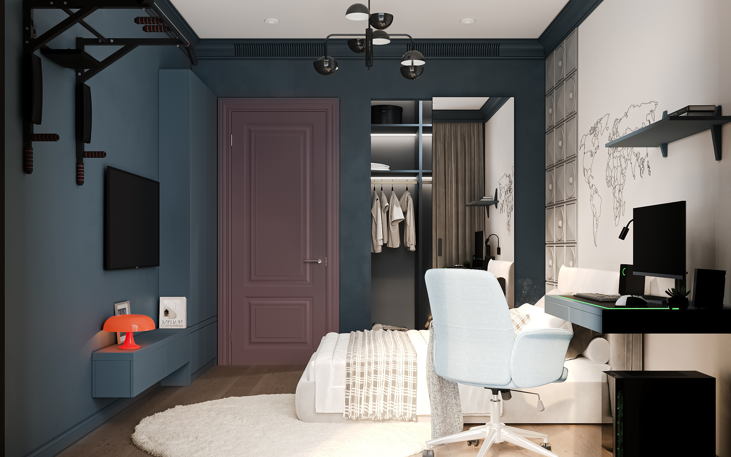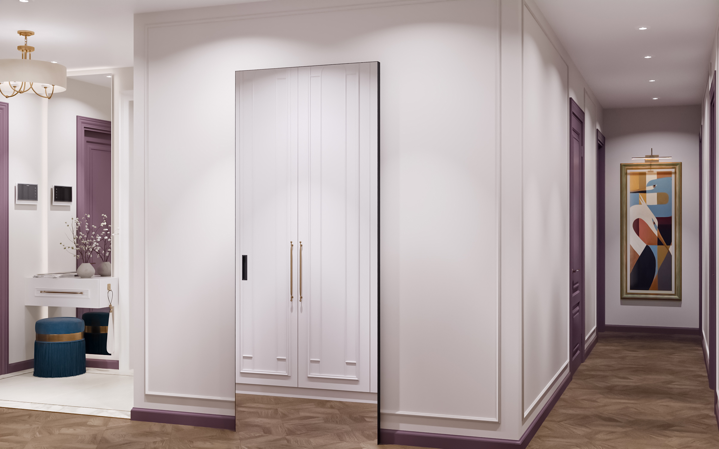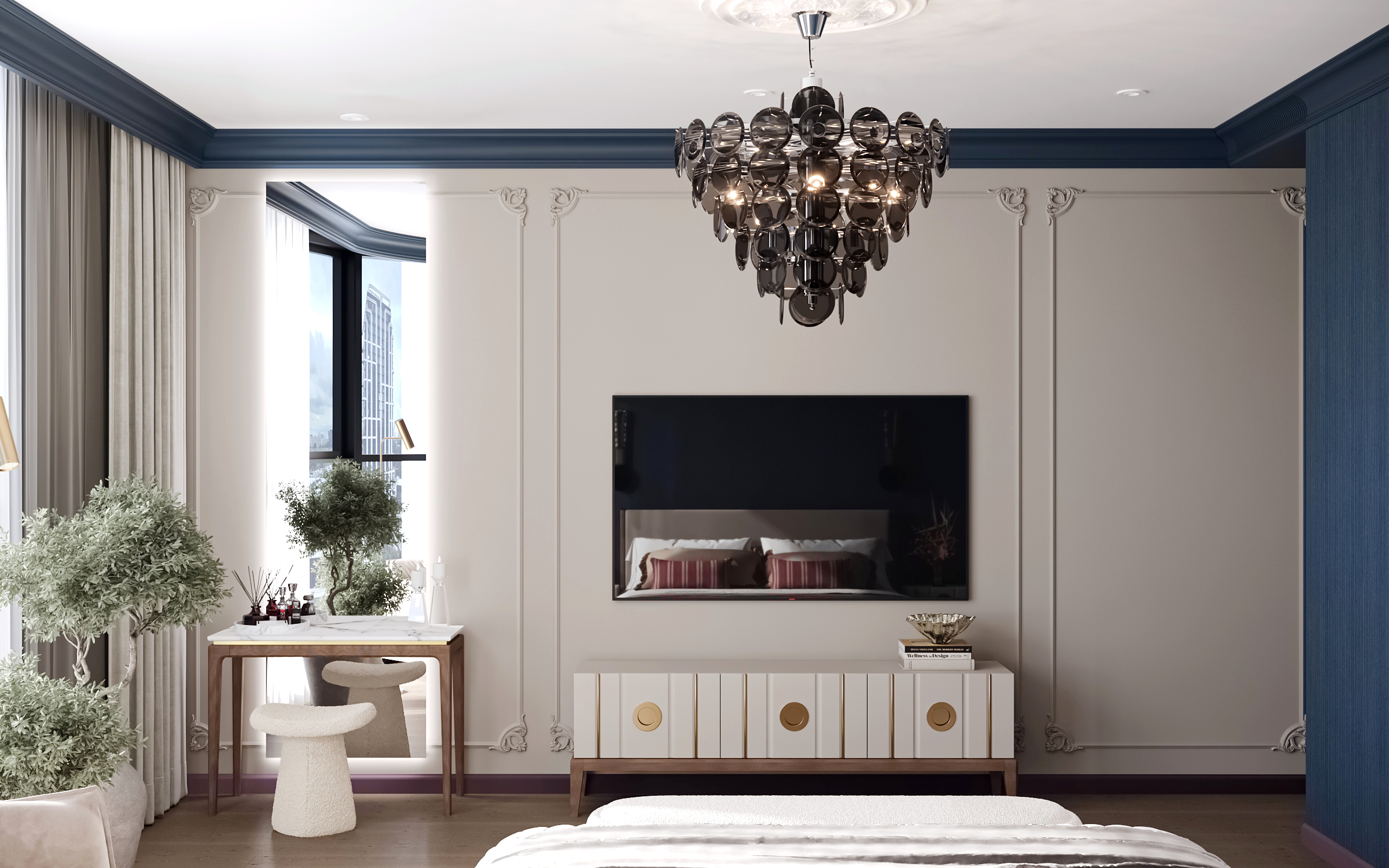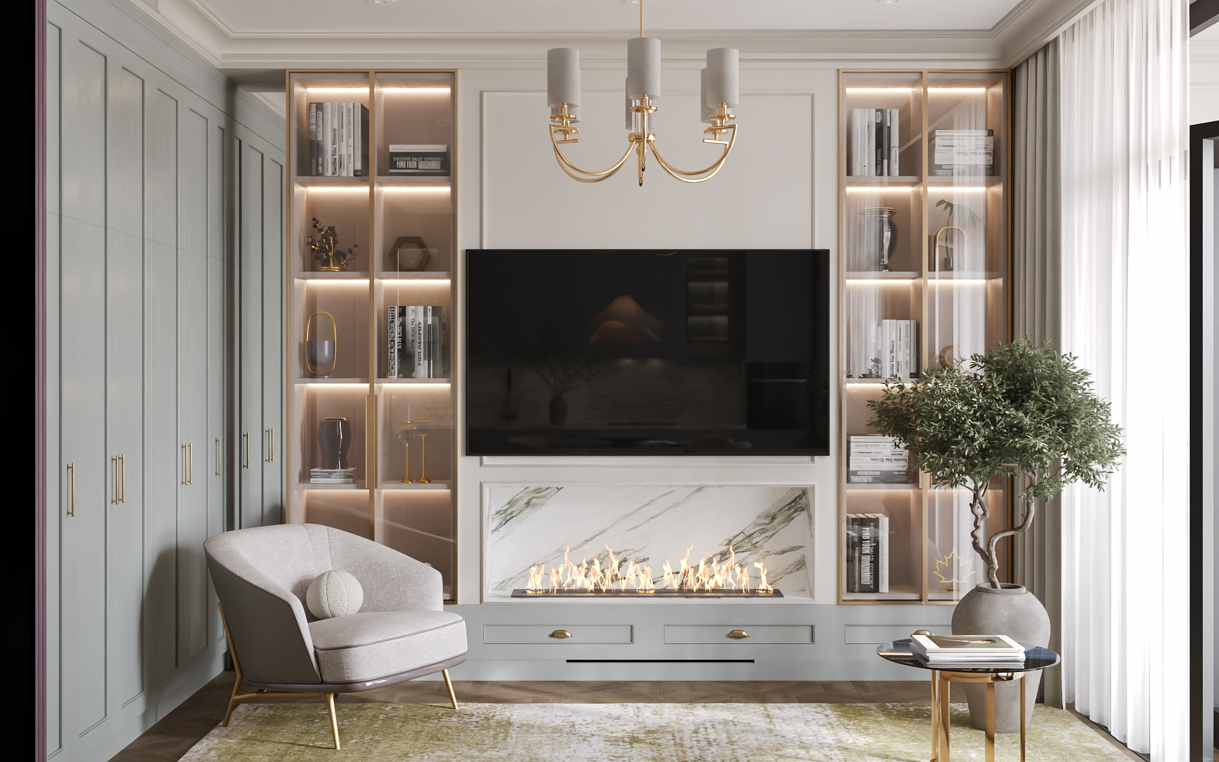 Эта просторная квартира в ЖК «Остров» создана для семьи: супруги и двое детей — мальчик и девочка. Планировка выстроена так, чтобы у каждого было своё пространство и одновременно сохранялось ощущение единого дома. Панорамные окна наполняют интерьер светом, подчеркивая воздушность и свежесть нового пространства. В мастер-спальне предусмотрена гардеробная и собственная ванная, а детские комнаты расположены так, чтобы быть рядом, но не мешать друг другу.