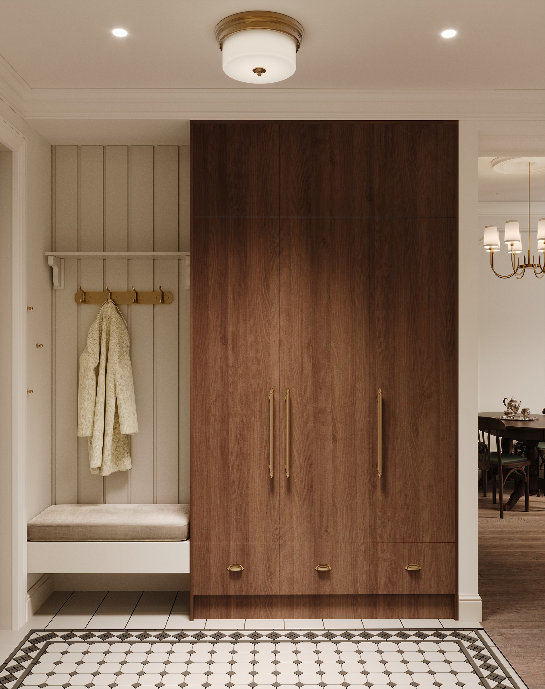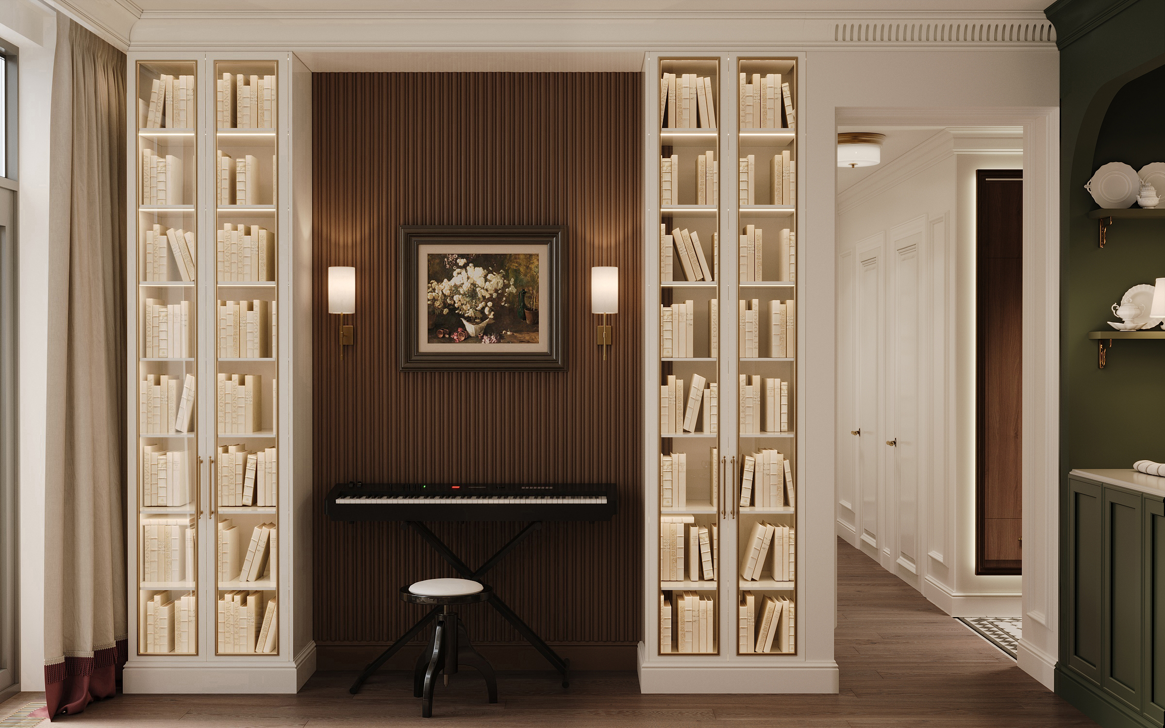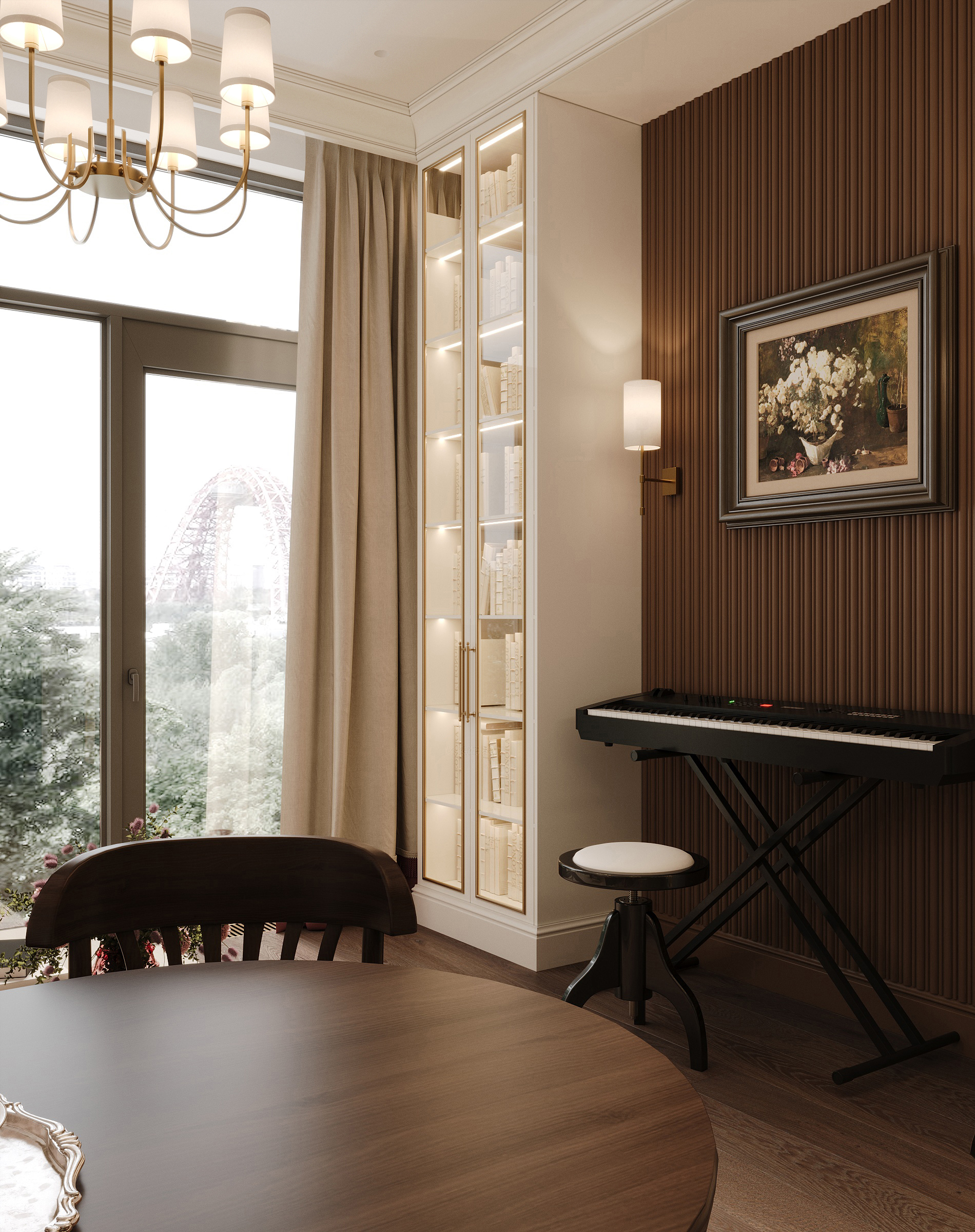 Проект создан для семьи, которая ценит изысканность английской классики и одновременно стремится к современному комфорту. Пространство сочетает в себе сдержанную элегантность и атмосферу уюта, где каждая деталь продумана до мелочей.