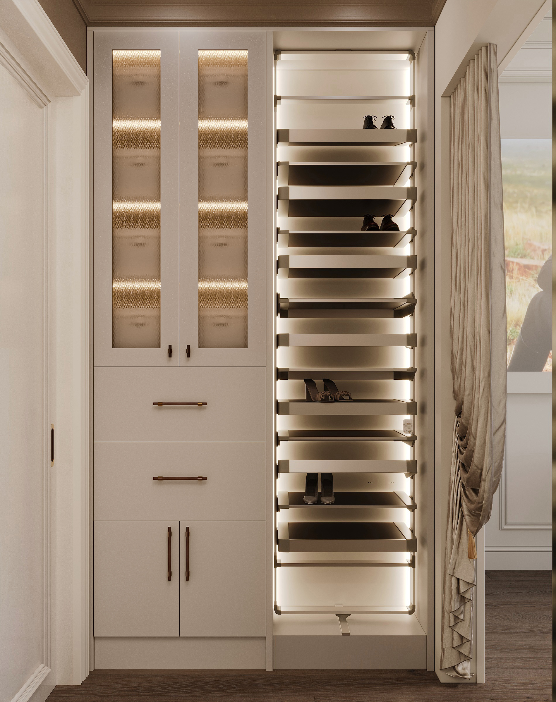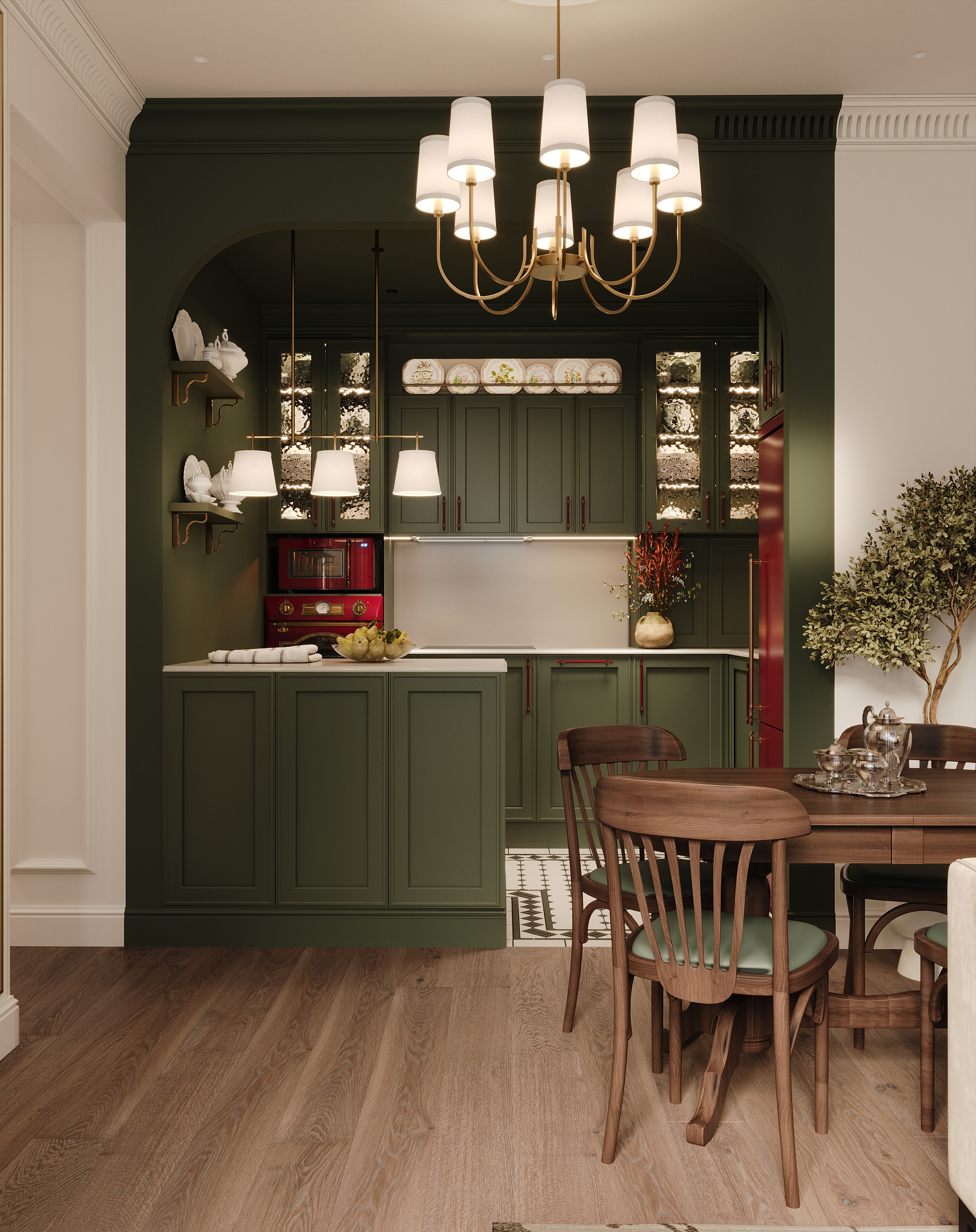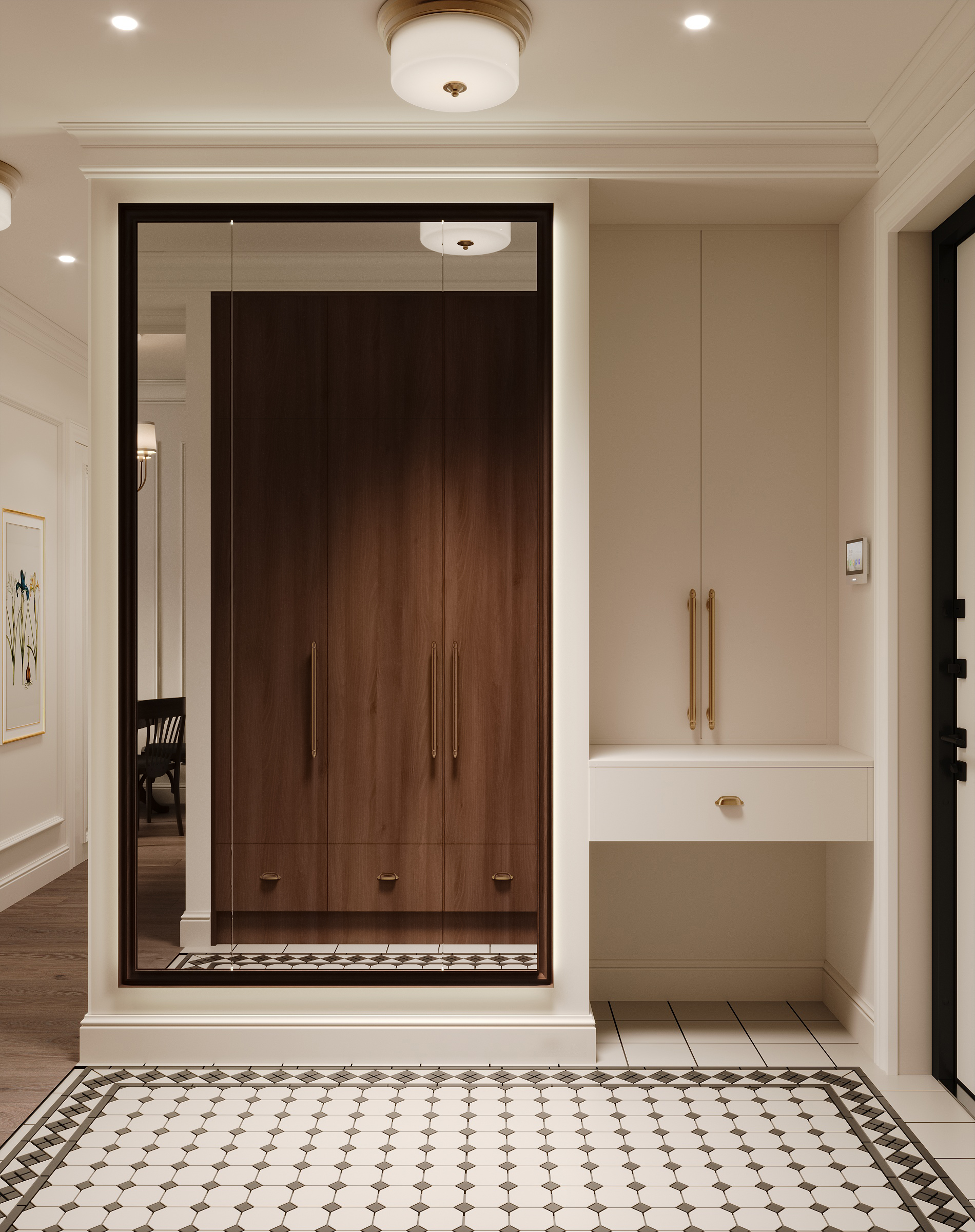 Проект создан для семьи, которая ценит изысканность английской классики и одновременно стремится к современному комфорту. Пространство сочетает в себе сдержанную элегантность и атмосферу уюта, где каждая деталь продумана до мелочей.
