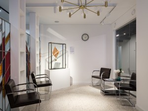 Интерьеры водолечебницы оформлены в светлых оттенках поддерживающих спокойную и расслабляющую атмосферу. Кабинеты оснащены современными удобствами, при этом сохраняя стильные элементы декора в духе советского модернизма, такие как панно с абстрактными узорами и советские светильники.